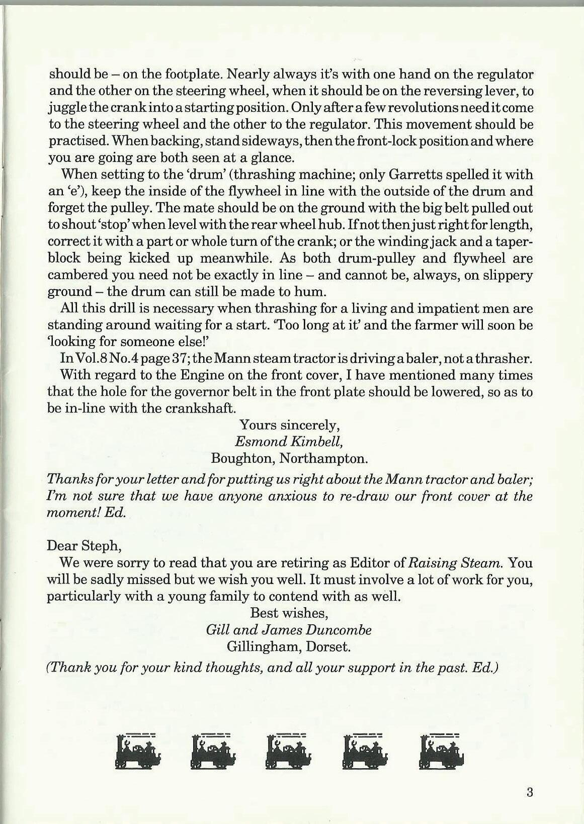 We were sorry to read that you are retiring as Editor of Raising Steam. You will be sadly missed but we wish you well. It must involve a lot of work for you, particularly with a young family to contend with as well.