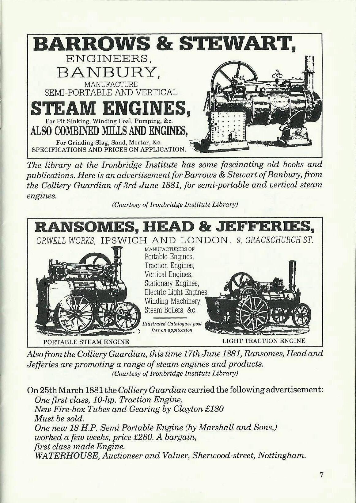 On 25th March 1881 the Colliery Guardian carried the following advertisement: One first class, 10-hp. Traction Engine, New Fire-box Tubes and Gearing by Clayton £180 Must be sold.