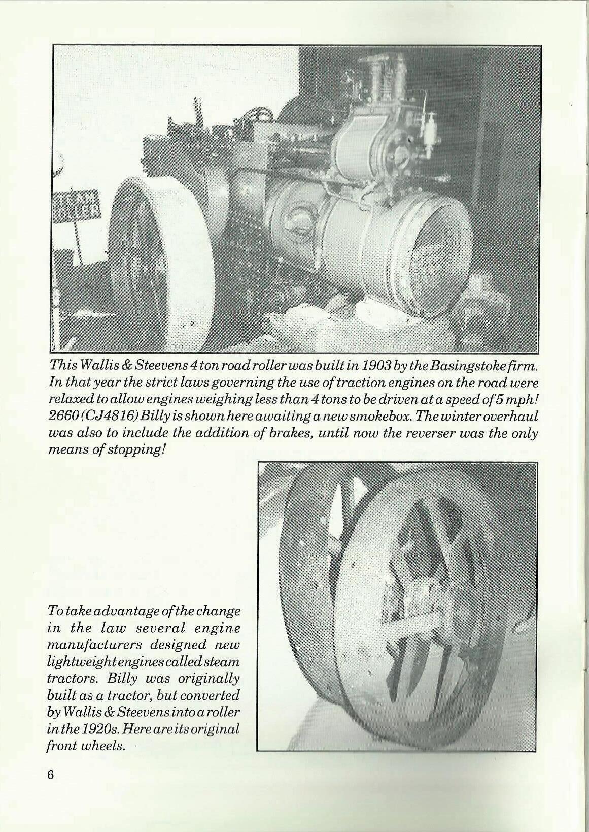 This Wallis & Steevens 4 ton road roller was built in 1903 by the Basingstoke firm. In that year the strict laws governing the use of traction engines on the road were relaxed to allow engines weighing less than 4 tons to be driven at a speed of 5 mph! 2660 (CJ4816) Billy is shown here awaiting a new smoke box. The winter overhaul was also to include the addition of brakes, until now the reverser was the only means of stopping!