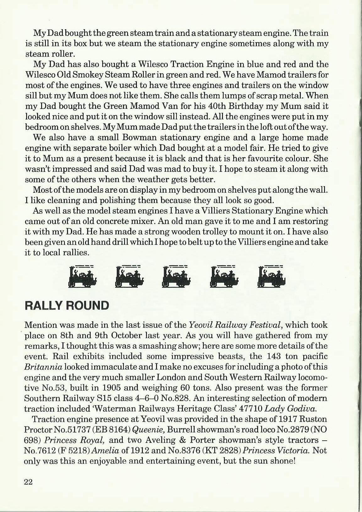 Anthony Suffolk, age 10. Box No.2201 -lives in Lancashire, likes all steam engines, especially ploughing engines, also stationary engines, railways, biking and walking.