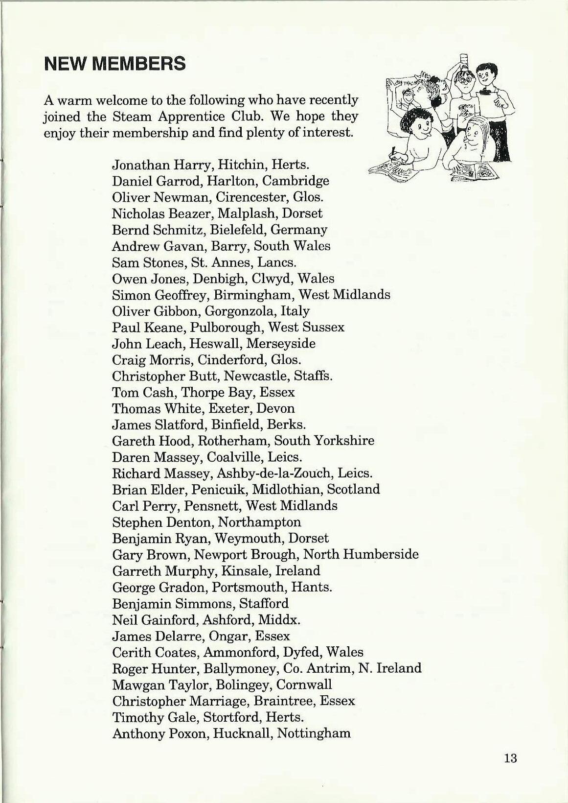 Nicholas Alderson, age 14. Box No.1897 -lives in North Yorkshire and likes all steam engines, also interested in computers and watches videos.