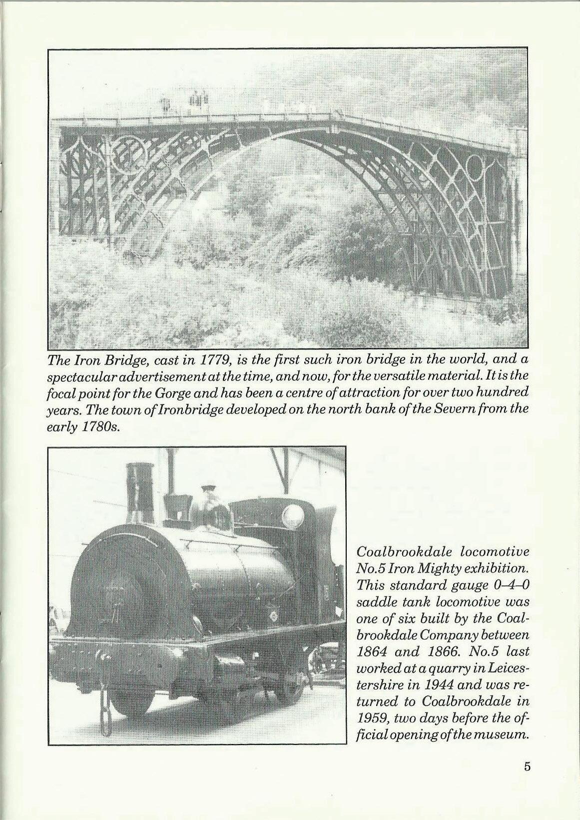 No.5 Iron Mighty exhibition. This standard gauge 0-4-0 saddle tank locomotive was one of six built by the Coalbrookdale Company between 1864 and 1866. No.5 last worked at a quarry in Leicestershire in 1944 and was returned to Coalbrookdale in 1959, two days before the official opening of the museum.