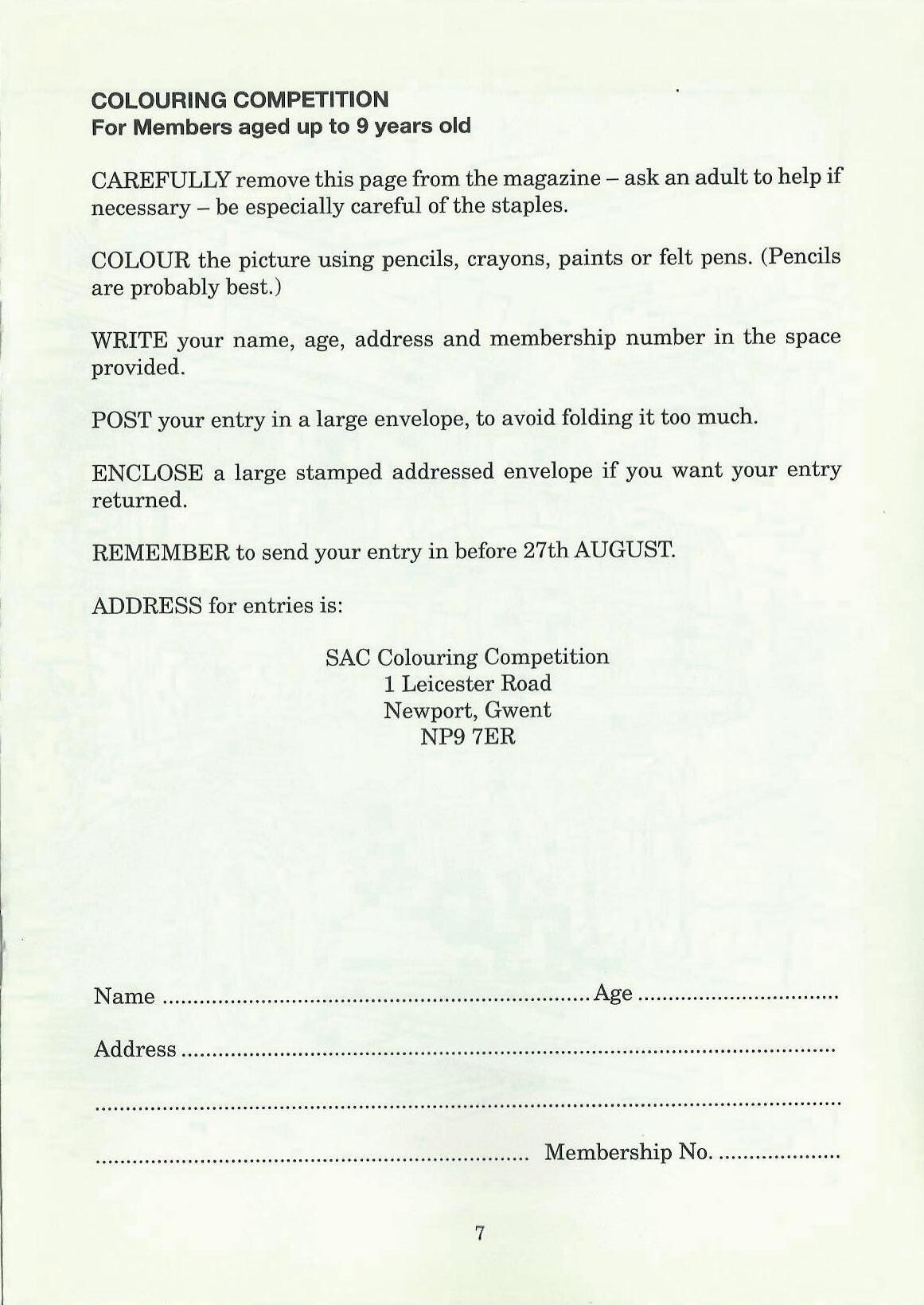 3. Entries must be sent to the Editor of the SAC magazine by Saturday 26thAugust. (Address at the front of this magazine.)