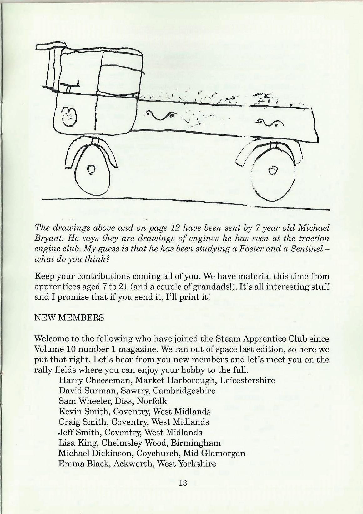 Welcome to the following who have joined the Steam Apprentice Club since Volume 10 number 1 magazine. We ran out of space last edition, so here we put that right. Let's hear from you new members and let's meet you on the rally fields where you can enjoy your hobby to the full.