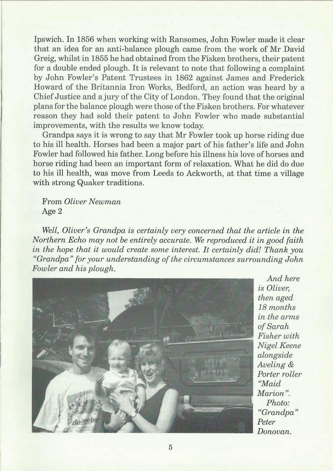 Well, Oliver's Grandpa is certainly very concerned that the article in the Northern Echo ,nay not be entirely accurate. We reproduced it in good faith in the hope that it would create some interest. It certainly did! Thank you "Grandpa" for your understanding of the circunistances surrounding John Fowler and his plough.