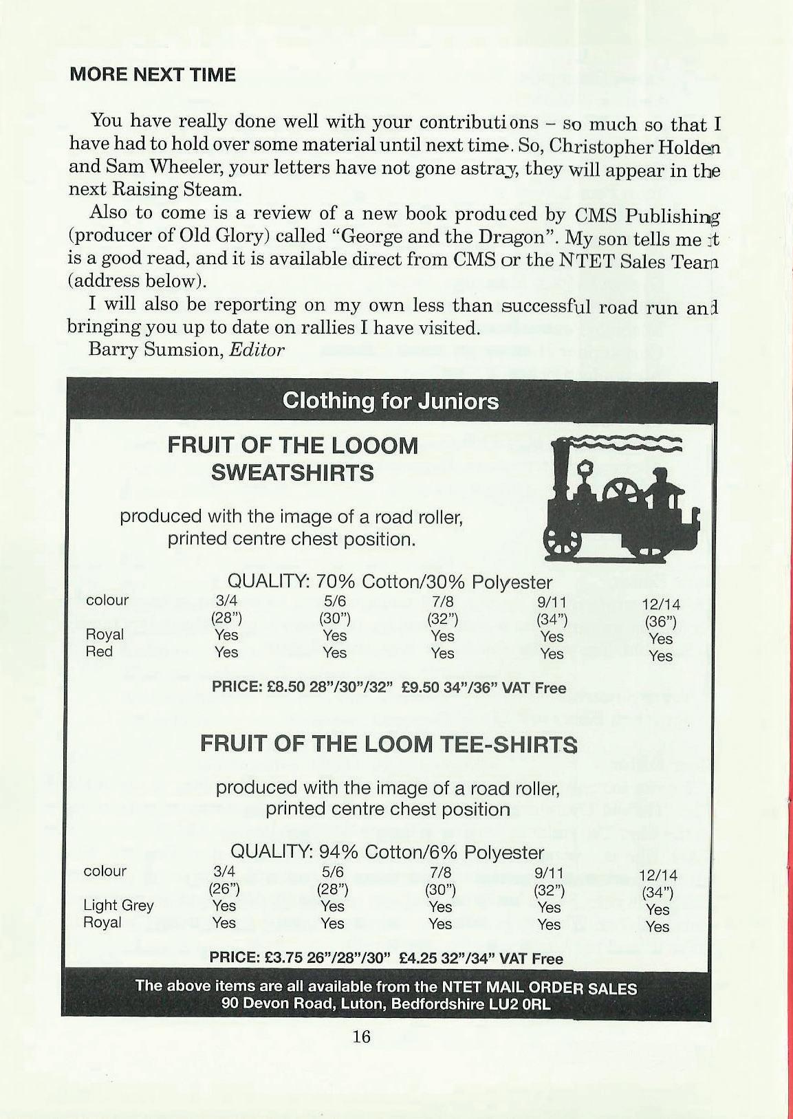 So, what we need are your reports on what you've been up to this year, your competition entries and your presence at the SAC stand at the Great Dorset, and of course, your presence at the NTET Road Run. Let's show just how useful steam apprentices can be!