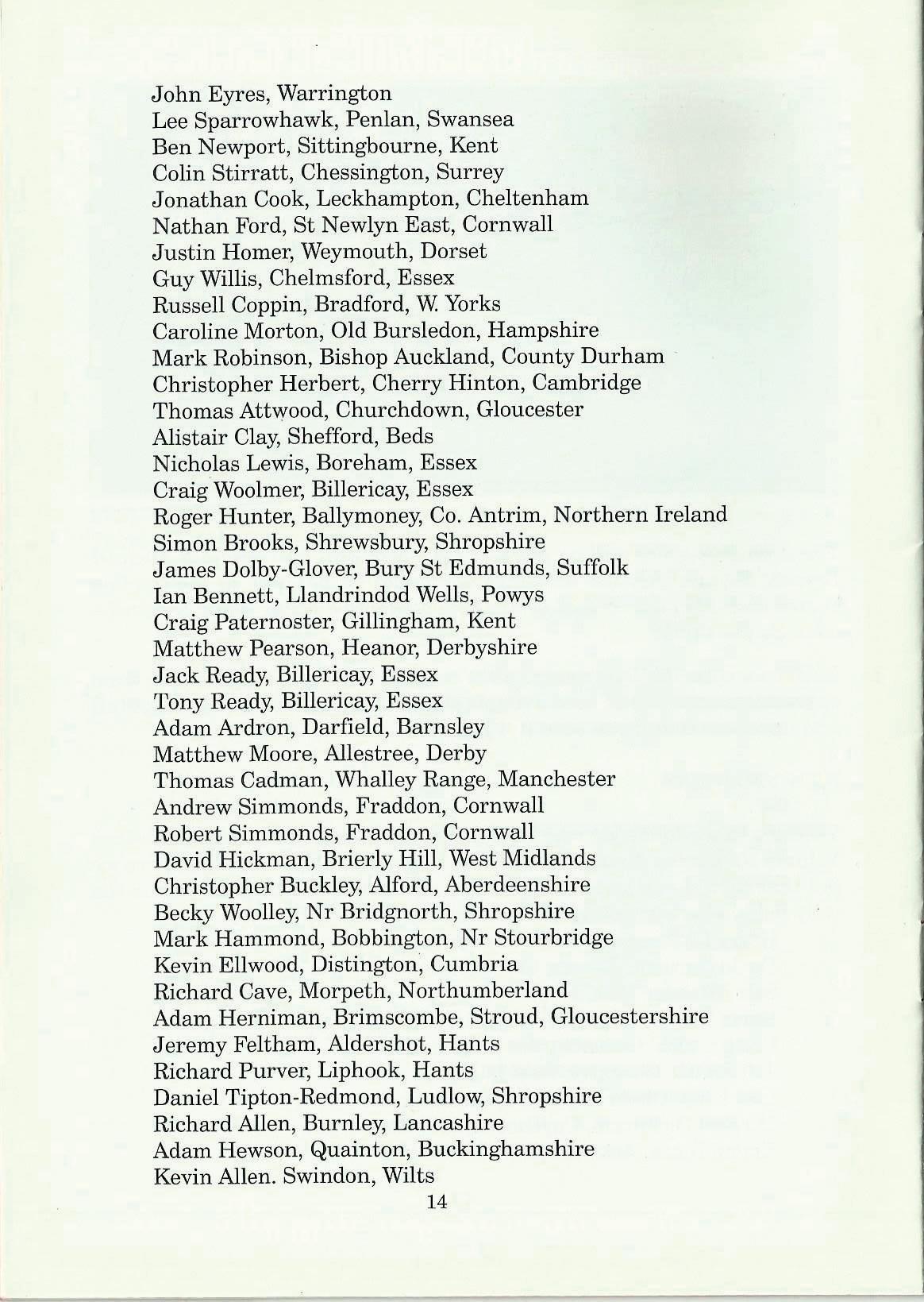 Jeremy Feltham, Aldershot, Hants