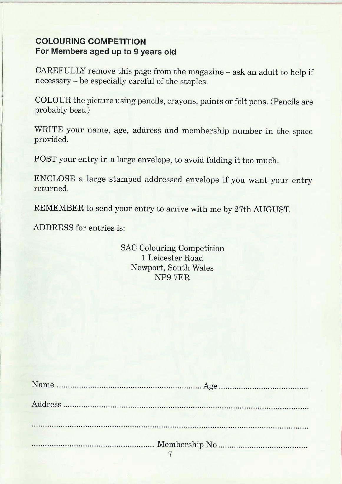 SAC Colouring Competition 1 Leicester Road Newport, South Wales NP97ER