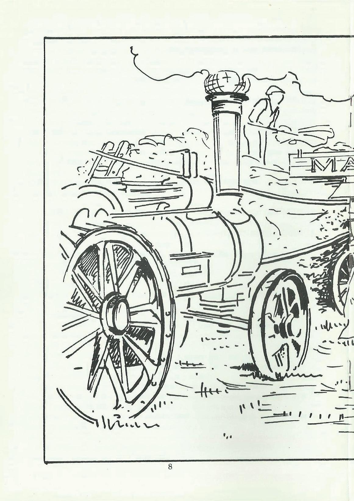 The drawings above and on page 12 have been sent by 7 year old Michael Bryant. He says they are drawings of engines he has seen at the traction engine club. My guess is that he has been studying a Foster and a Sentinelwhat do you think?