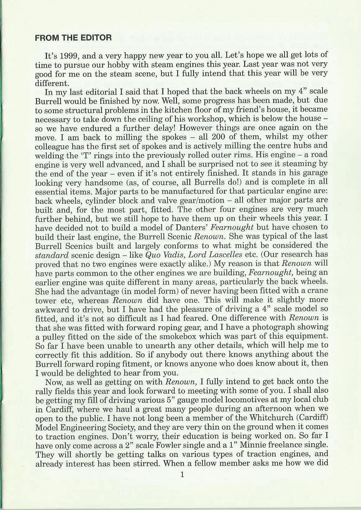 It's 1999, and a very happy new year to you all. Let's hope we all get lots of time to pursue our hobby with steam engines this year. Last year was not very good for me on the steam scene, but I fully intend that this year will be very different.