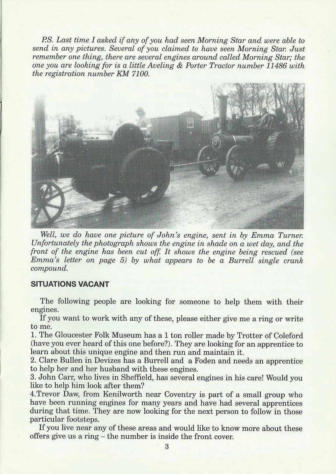 In this issue we have also included a 'Situations Vacant' section which lists four people or groups who are wanting someone to help them with their engines, again an excellent chance to get to work on an engine and really understand the whats, whens and hows.