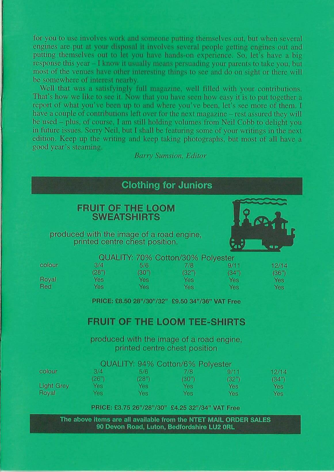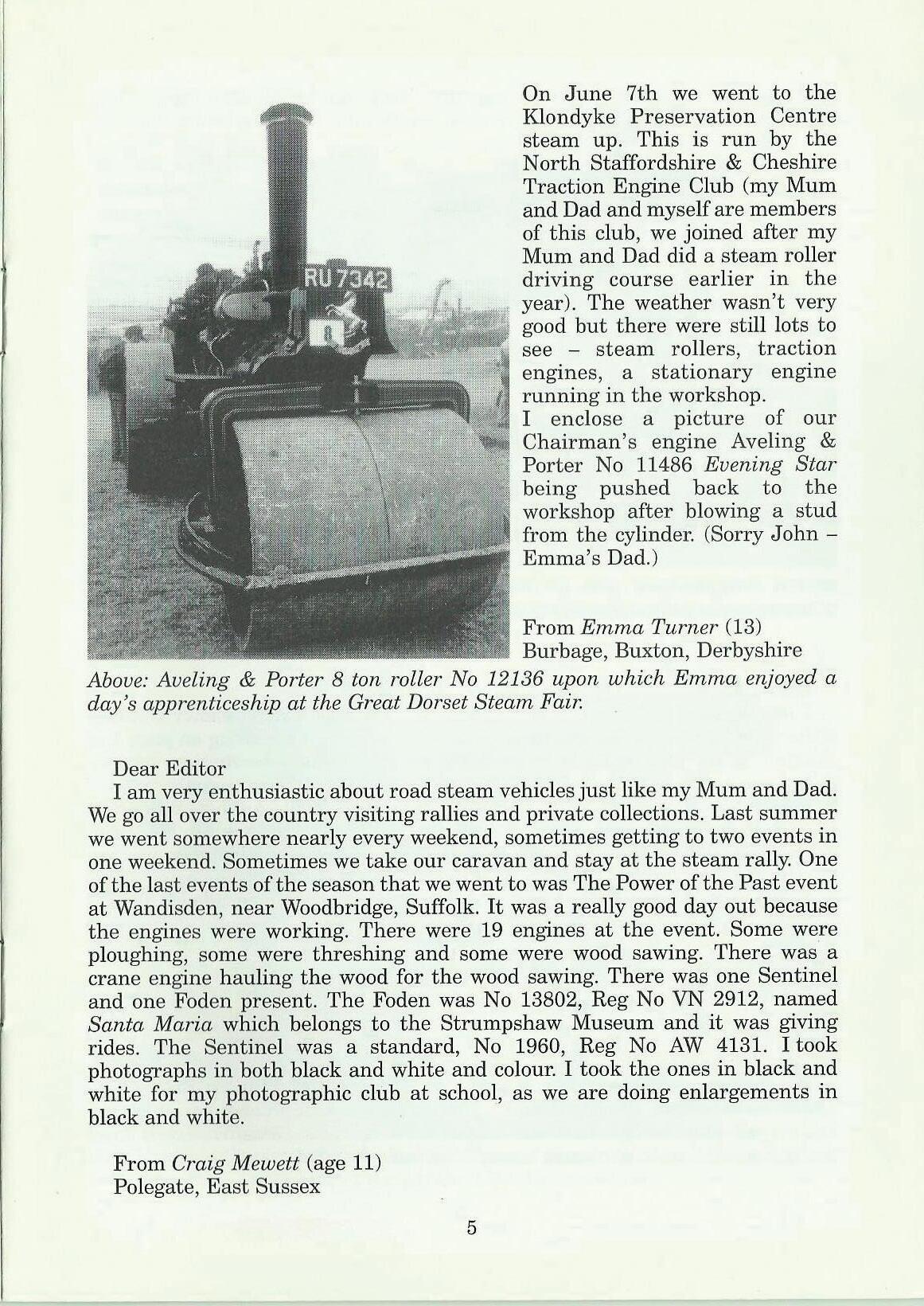 So, I fully intend to have a good steaming year! What about you? I hope your enthusiasm will keep you turning up at the rallies and to those of you who are apprenticed to an engine, keep it up, keep turning up when requested, keep getting engines clean and yourselves dirty! AND keep sending in your reports and photographs, that's what will make your magazine most interesting, which reminds me -if any of you are the sons and daughters of engine owners (and I know some of you are) then how about letting us hear some of your stories or those of your Mums and Dads, and your engines.