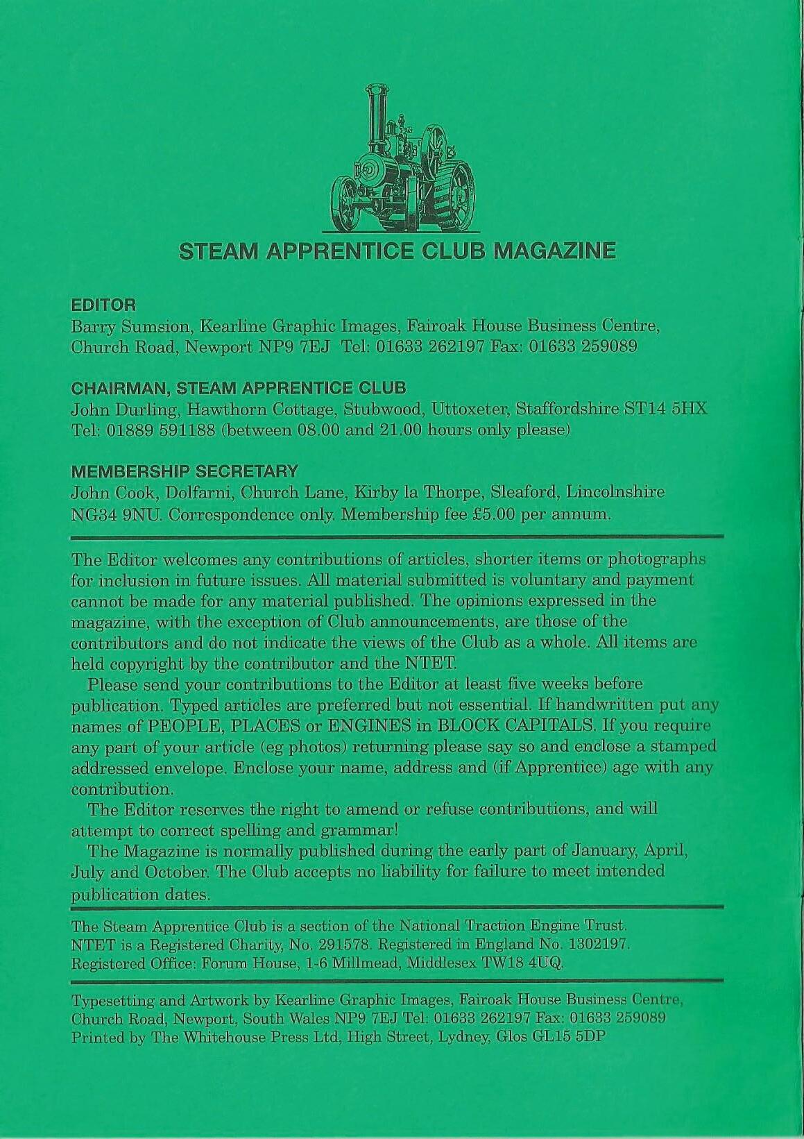 The Steam A.ppr.entice Club is a section of the National. W,ractiionEngine Trust. NTE'Ji' is a Register.ed Oharity,IIN:o. 291578. IReg:istered in England N@. 1'302197. Registe.red Off.ice:F0rum House, il...6 Mifmead, Midtllesex \PW18 41:NQ.