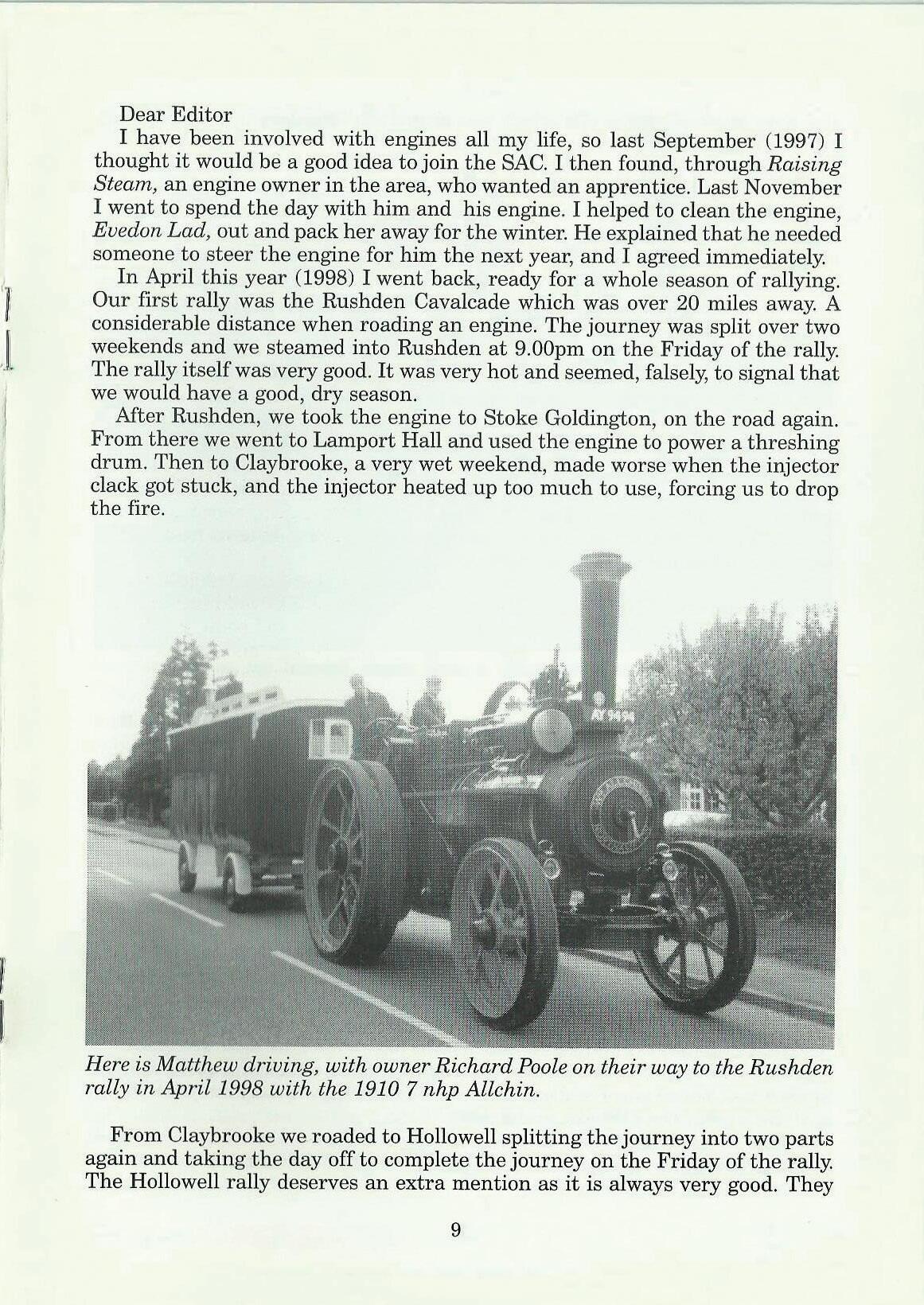 The last rally I went to was the GDSF, which brings me to the point of my letter. I am one of the apprentices, pictured on page 15, driving the Robey.