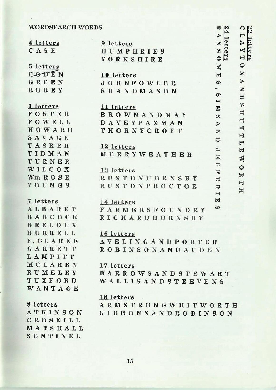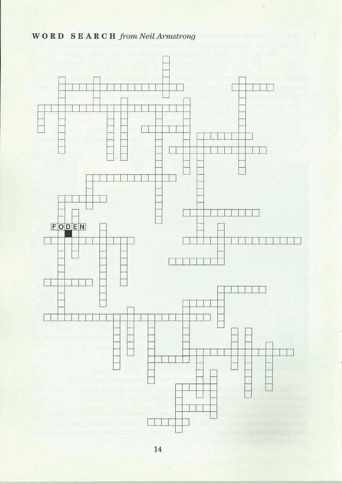 I am now very pleased to include a Word Search puzzle created by apprentice Neil Armstrong. This was given to me at the Great Dorset, and I know little else about Neil, other than his membership number - 2156. This must have taken Neil some time to create, for it is a very professional piece of work. I hope you will en}oy finding all the correct positions for the words. And if you enjoy creating these puzzles Neil, I would dea:rly welcome more of the same! Thanks for a great effort. - Ed. SEE OVER PAGE 13