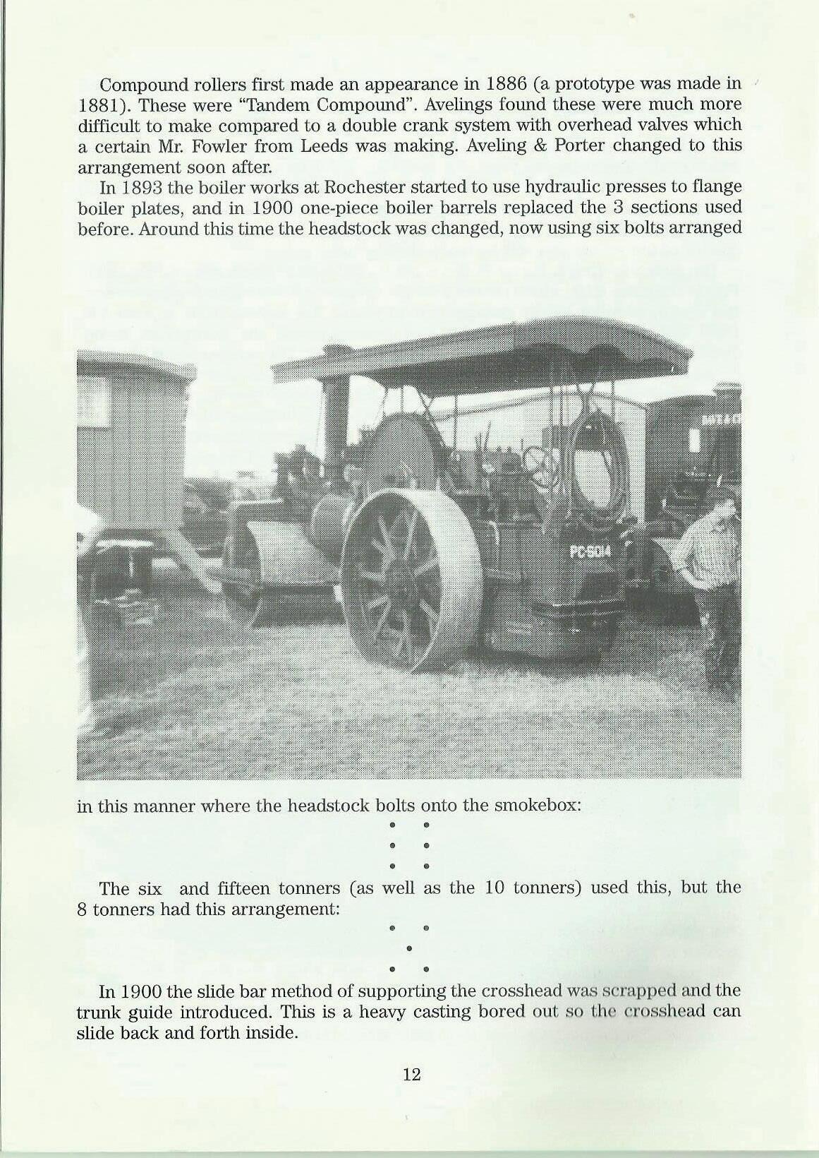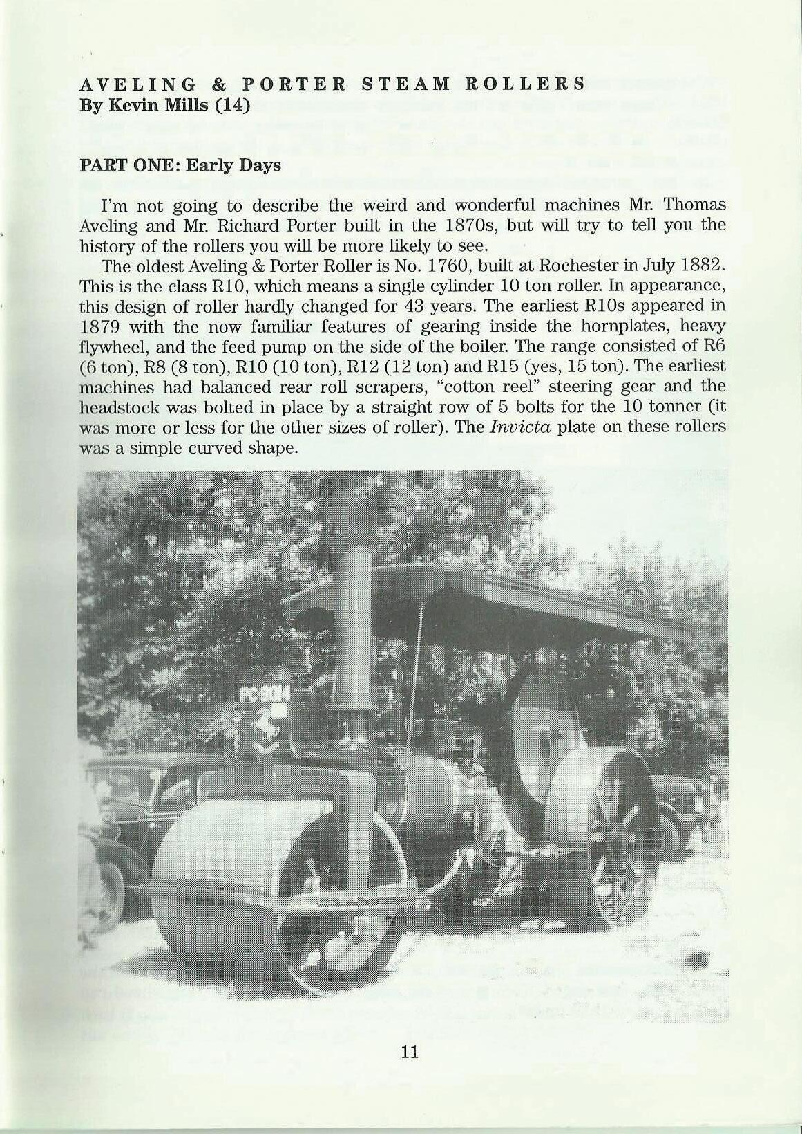 I enclose a series of articles on Avelings rollers which I hope you can put in Raising Steam. I have serialised them. Avelings are very dear to me -my "Uncle" Mike Woods (who is actually my Gran's cousin) used to own 8 ton Roller 11093 of 1924, a D Type. This was last steamed in the 1980s. It was watching Fred Dibnah's Aveling on TV in 1992 which got me really interested in engines -since then I have joined the SACand I am now an apprentice on Derek Kilburn' s Burrell Traction 4019 and Brian Johnson's Aveling Roller AG758 at Amberley Museum, and also on Brian Downey's Fowler Traction 11814. I have bought a very old Wilesco roller which I have rebuilt and painted in the Aveling style. At Amberley I am very much involved with the rebuilding of Marshall Roller 79669 which is having a new firebox, backhead and cylinder foot. I helped dismantle her and we are now making new crankshaft bearings. I have driven the Burrell a few times, and Derek has recently let me take her round the museum single-handed -he was in the bunker of course. This year we are taking the Burrell to Cornwall. I go to most rallies around here with the Fowler and spent the Great Dorset with Colin Knight and his three engines, a Wallis, an Aveling tractor and a Ruston tractor. At home Colin has 10 or 11 more!