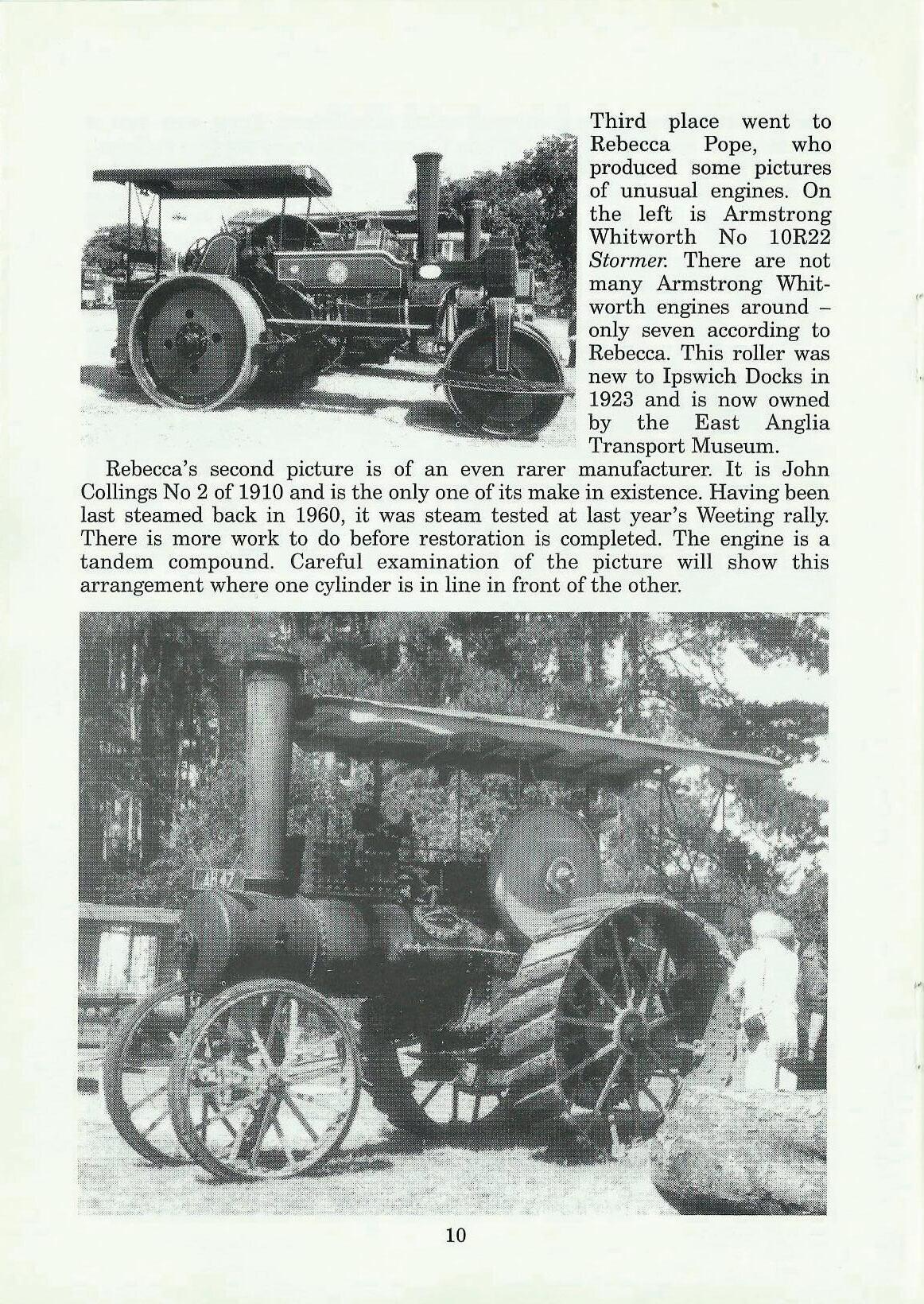 Third place went to Rebecca Pope, who produced some pictures of unusual engines. On the left is Armstrong Whitworth No 10R22 Stormer. There are not many Armstrong Whitworth engines aroundonly seven according to Rebecca. This roller was new to Ipswich Docks in 1923 and is now owned by the East Anglia Transport Museum.