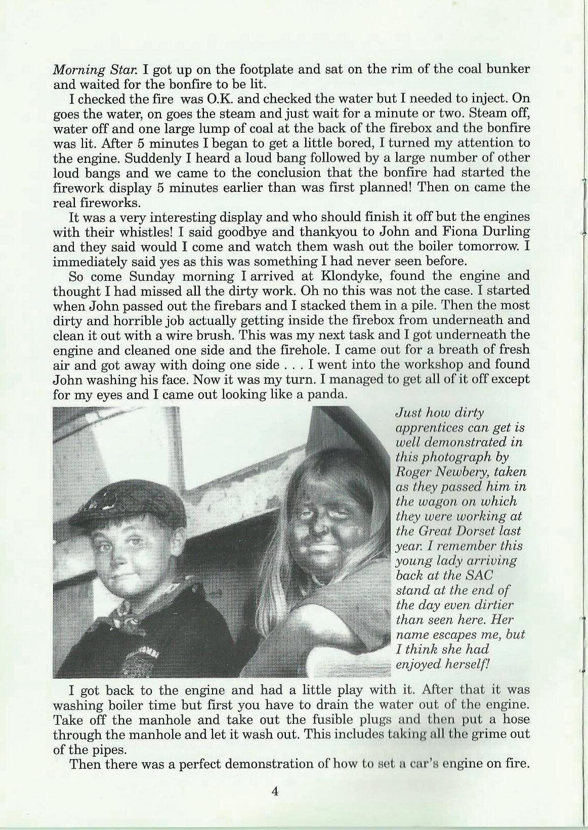 will be £50.00 + VAT for those aged 16 and over and £30.00 + VAT for those aged 13 to 15. Again, if in doubt, talk to someone who has been before. These courses give you the chance to get some proper instruction in how engines work, how to look after them and how to drive them - there is of course lots of time spent on engines! If you are interested in this course send me a note and I will send you the information pack and application form as soon as they are available. Please enclose an A5 size stamped addressed envelope.