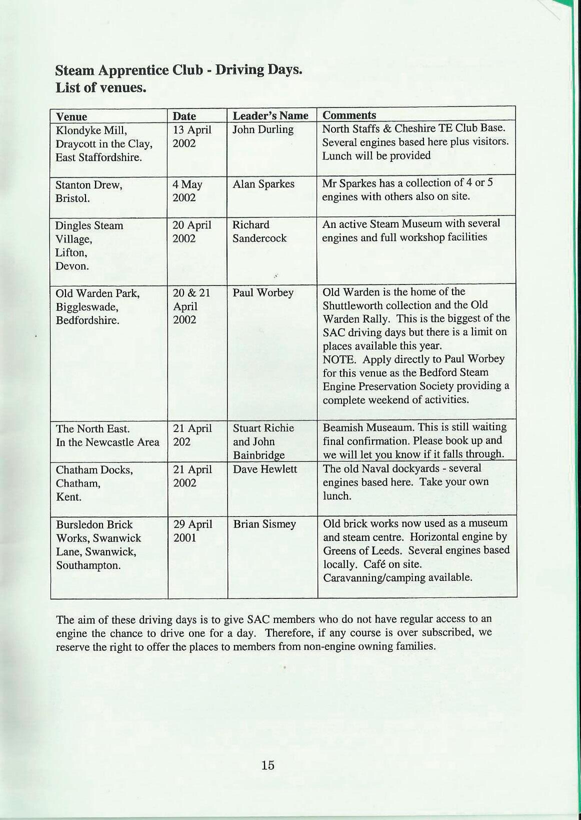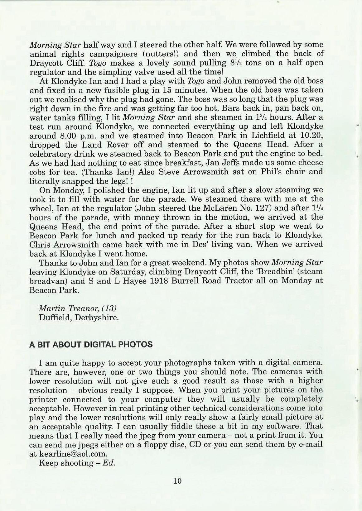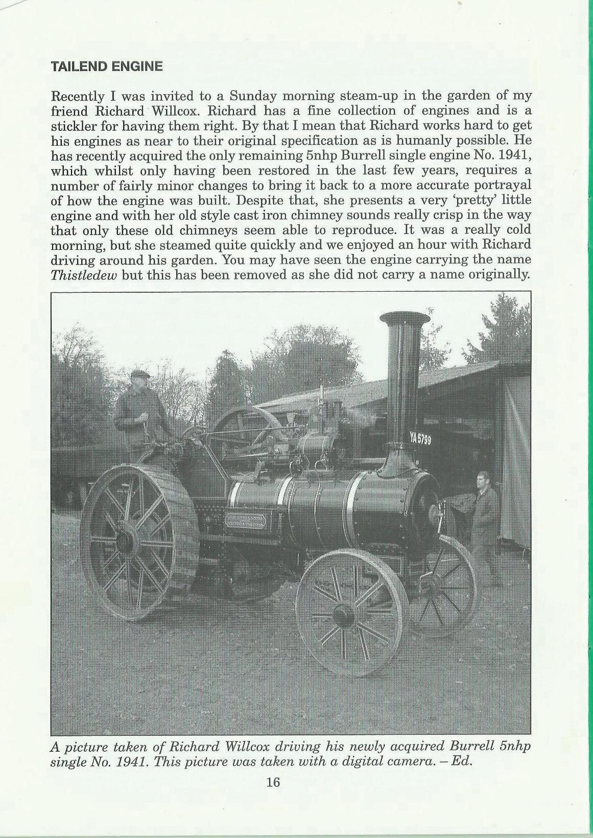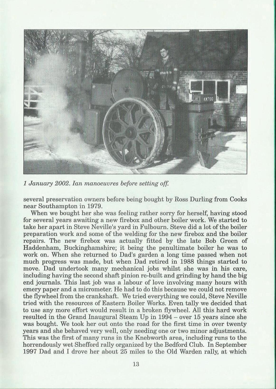 Your first magazine for the new year is, I'm afraid a little late. There are two reasons for this: pressure of work has not allowed me to get on with Raising Steam, and I'm afraid I have had little in the way of contributions from you. I guess that, in part, this may be due to last year's lack of rallies etc, due to Foot & Mouth Disease cancelling many events. So, we shall do our best, and hope that you will all be much more active this year, and be able to send in many more stories and reports. With this edition you will find details of our ever-popular Driving Days -please support these, a lot of work is done on your behalf organising them, and those who have joined in, have enjoyed them immensely. It only remains for me to wish you all a belated happy new year with lots of good steaming.