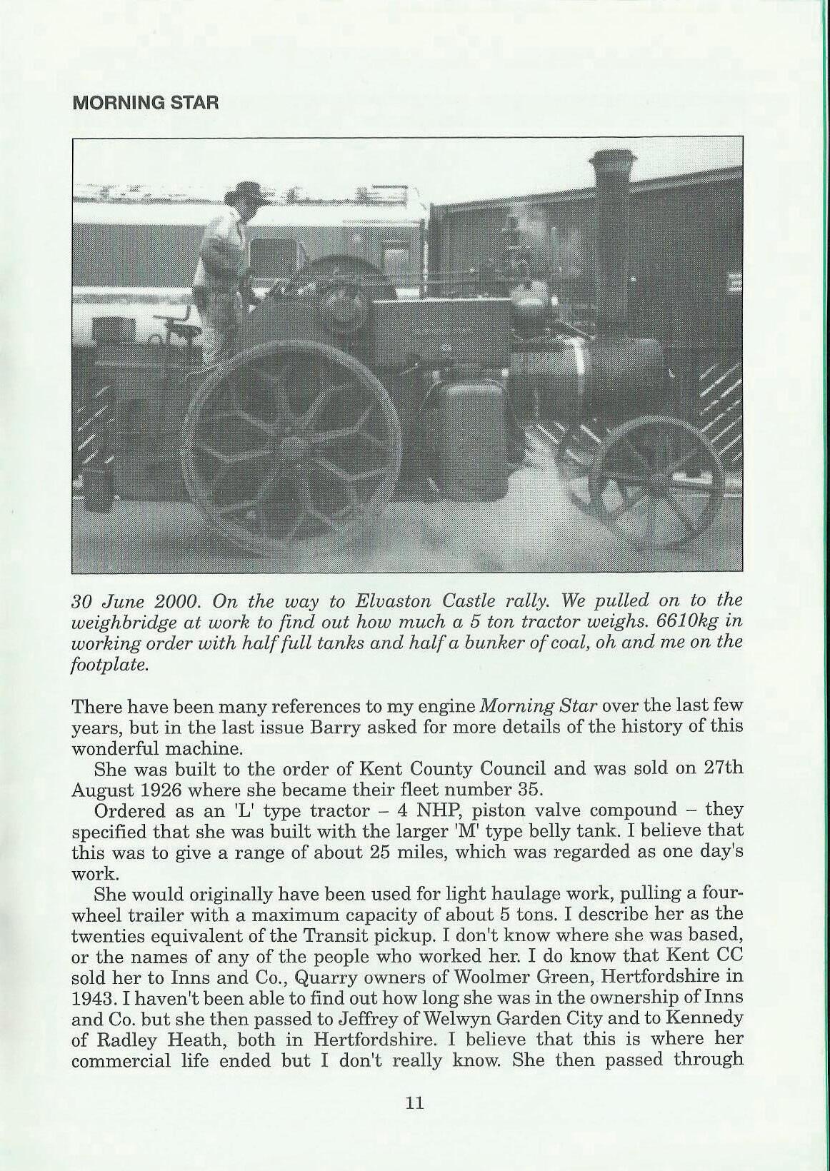 There have been many references to my engine Morning Star over the last few years, but in the last issue Barry asked for more details of the history of this wonderful machine.