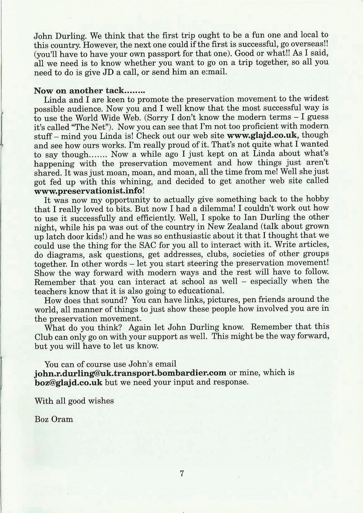 You can of course use John's email john.r.durling@uk.transport.bombardier.com or mine, which is boz@glajd.co.uk but we need your input and response.