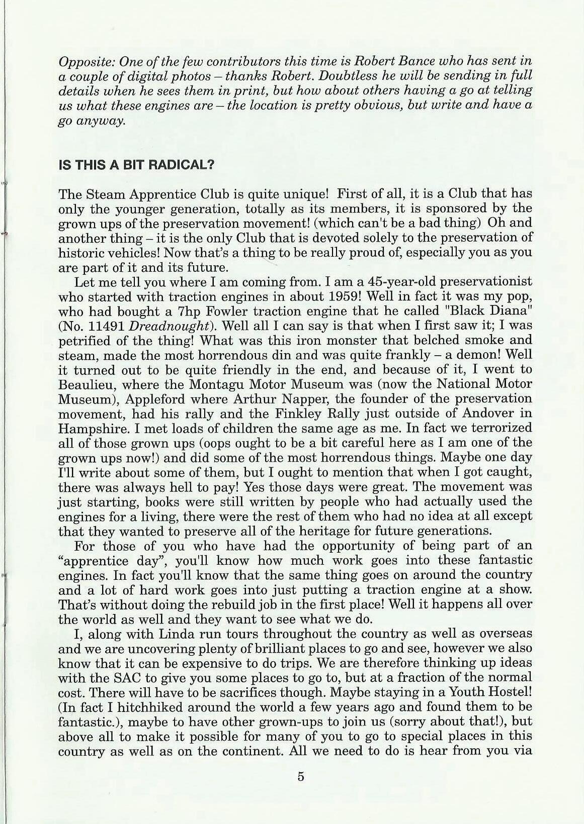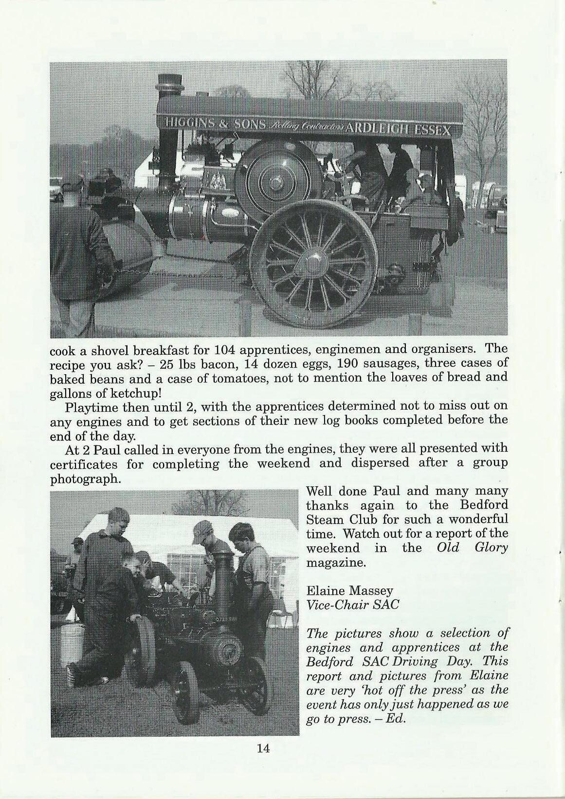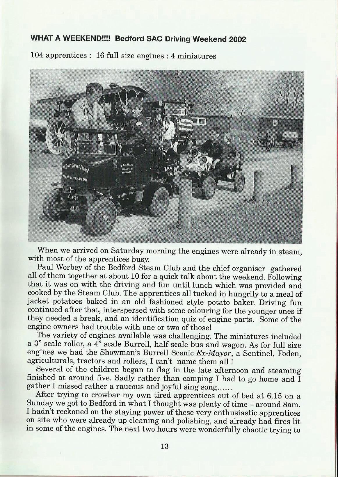 By the time you read this all of the Driving Days will have been and gone. The Bedford Steam Engine Preservation Society will have entertained over 80 of you and nearly as many again will have been to the other venues. I always feel that this level of activity is encouraging; how many clubs can claim that over one third of their members take part in the same events? Can I say a big Thank you to all of the people who put these days on for us and also to all of you Apprentices who go, have fun and make the days work.