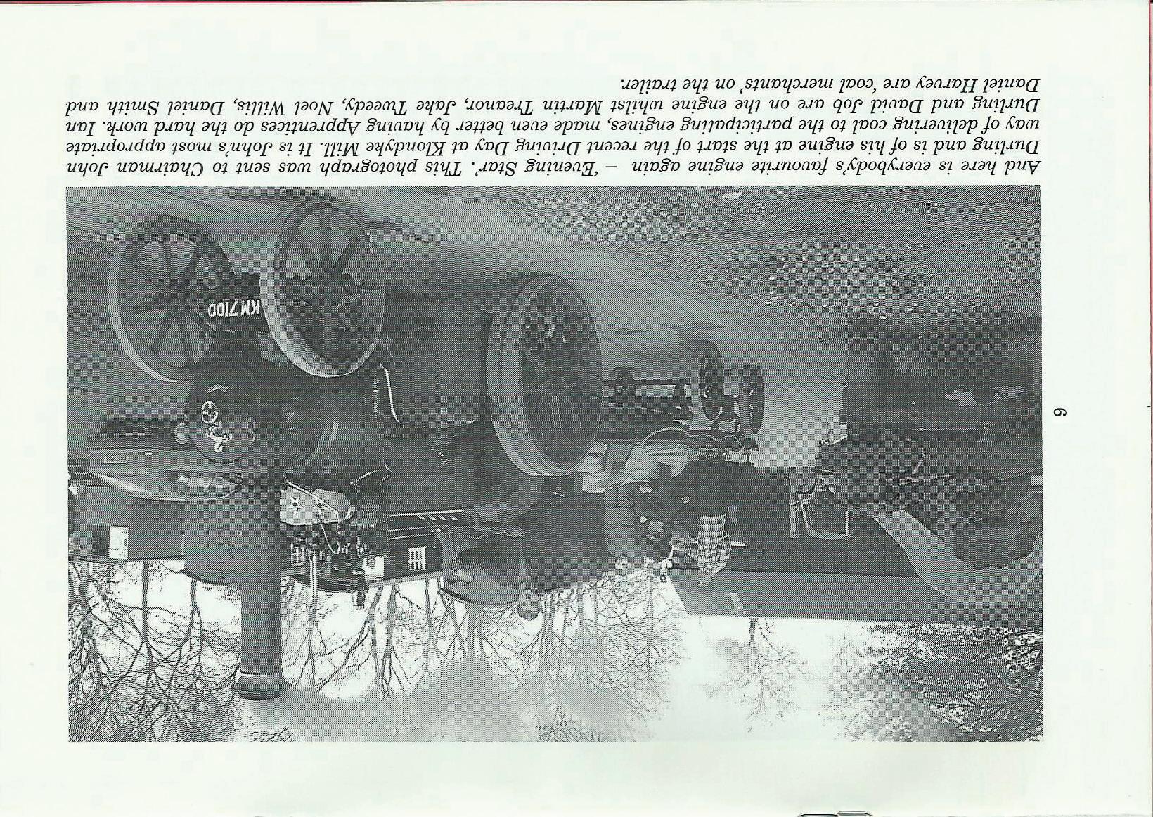 Following on from the last issue of Raising Steam, now apparently known as the 'Morning Star issue', I don't have too much to report in terms of progress with the Aveling. She is now properly back in steam, having already been out four times this season and it is still only the middle of April. The latest 'outing' was for the SAC Driving Day at Klondyke Mill, where 10 Apprentices had the pick of 6 engines and their drivers for a full day of driving. They didn't even have to light engines up, as the day coincided with the visit by the Boiler Inspector to witness the hot tests of most of the engines on site. This meant that all engines were lit up by 7:30 and the Apprentices didn't arrive until about half past nine. Now to Club matters.