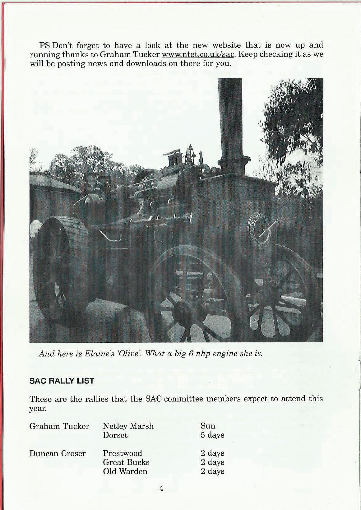 I have also included a list in this magazine which tells you where the SAC committee members will be during the year. PLEASE make sure that they are not lonely - get out there!