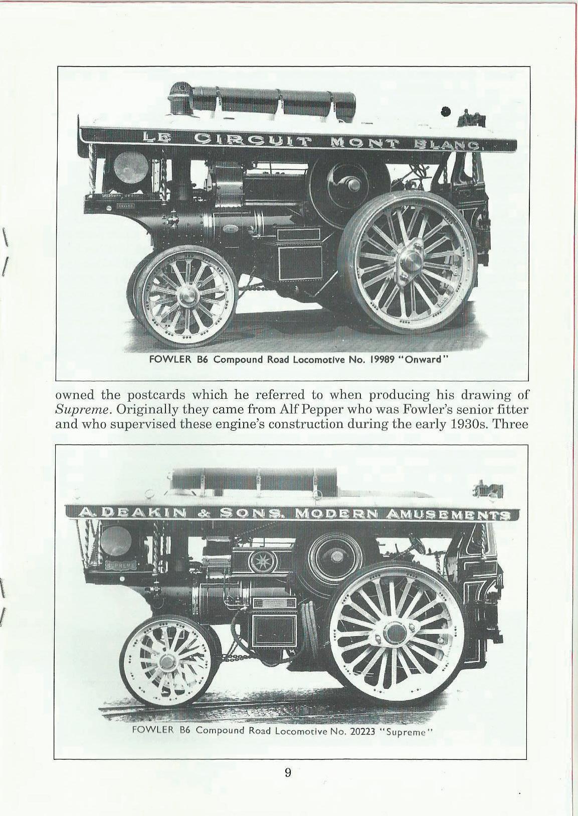 owned the postcards which he referred to when producing his drawing of Supreme. Originally they came from Alf Pepper who was Fowler's senior fitter and who supervised these engine's construction during the early 1930s. Three