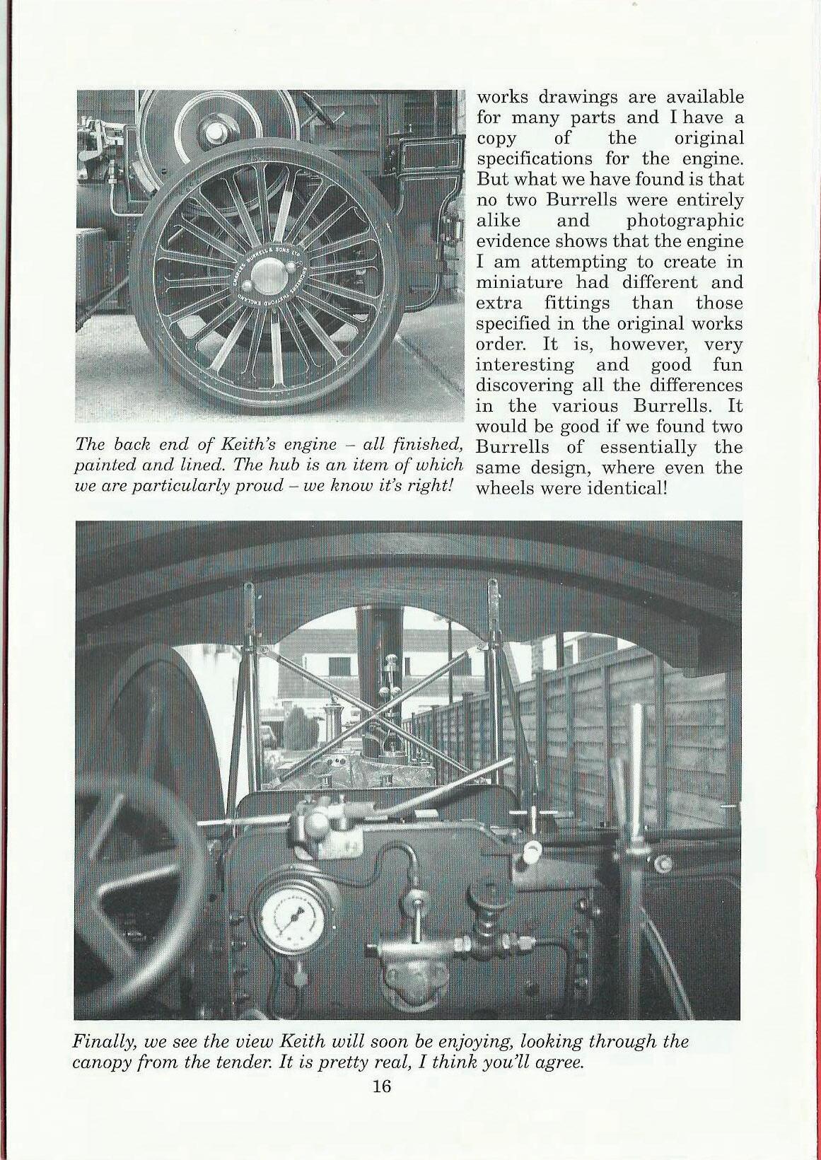 1 But what we have found is that no two Burrells were entirely alike and photographic evidence shows that the engine I am attempting to create in miniature had different and extra fittings than those specified in the original works order. It is, however, very interesting and good fun discovering all the differences in the various Burrells. It would be good if we found two Burrells of essentially the same design, where even the wheels were identical!