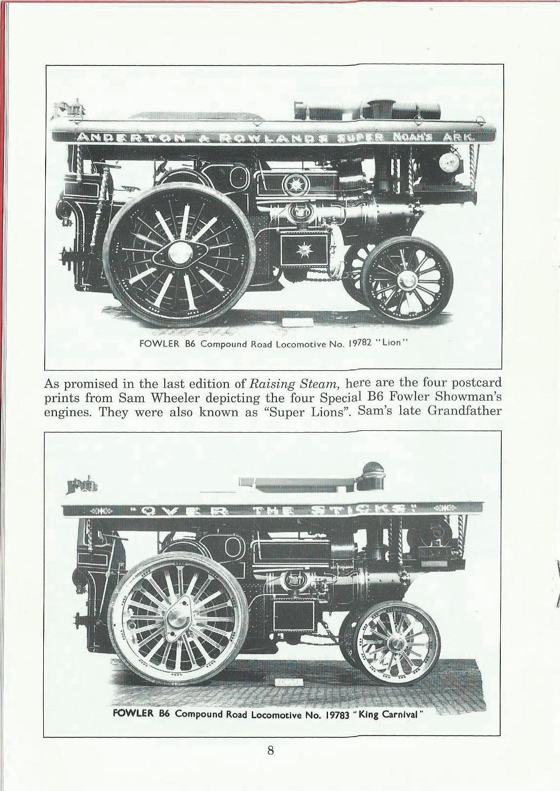 As promised in the last edition of Raising Steam, here are the four postcard prints from Sam Wheeler depicting the four Special B6 Fowler Showman's engines. They were also known as "Super Li.ons". Sam's late Grandfather