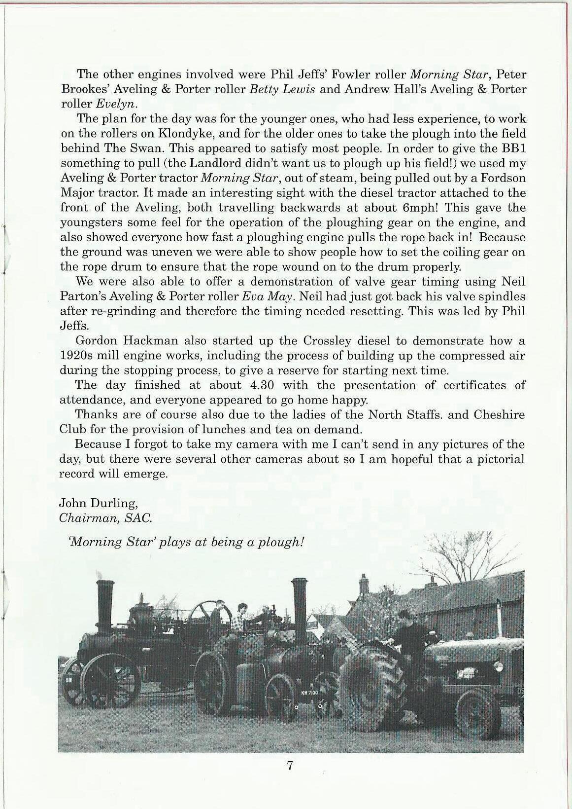 It is now April, time to start 'engineing' in earnest and Morning Star isn't even in the workshop yet. This is nothing to do with me being frightened of starting work and everything to do with family commitments during the first part of this year, including a couple of funerals. Still, things should now start to happen and I hope that by the next magazine I can report some serious progress. There is, of course, now a second 'SAC' engine in the form of Olive, a 6 nhp Garratt recently purchased by Elaine. She is telling you all about this elsewhere in this magazine.