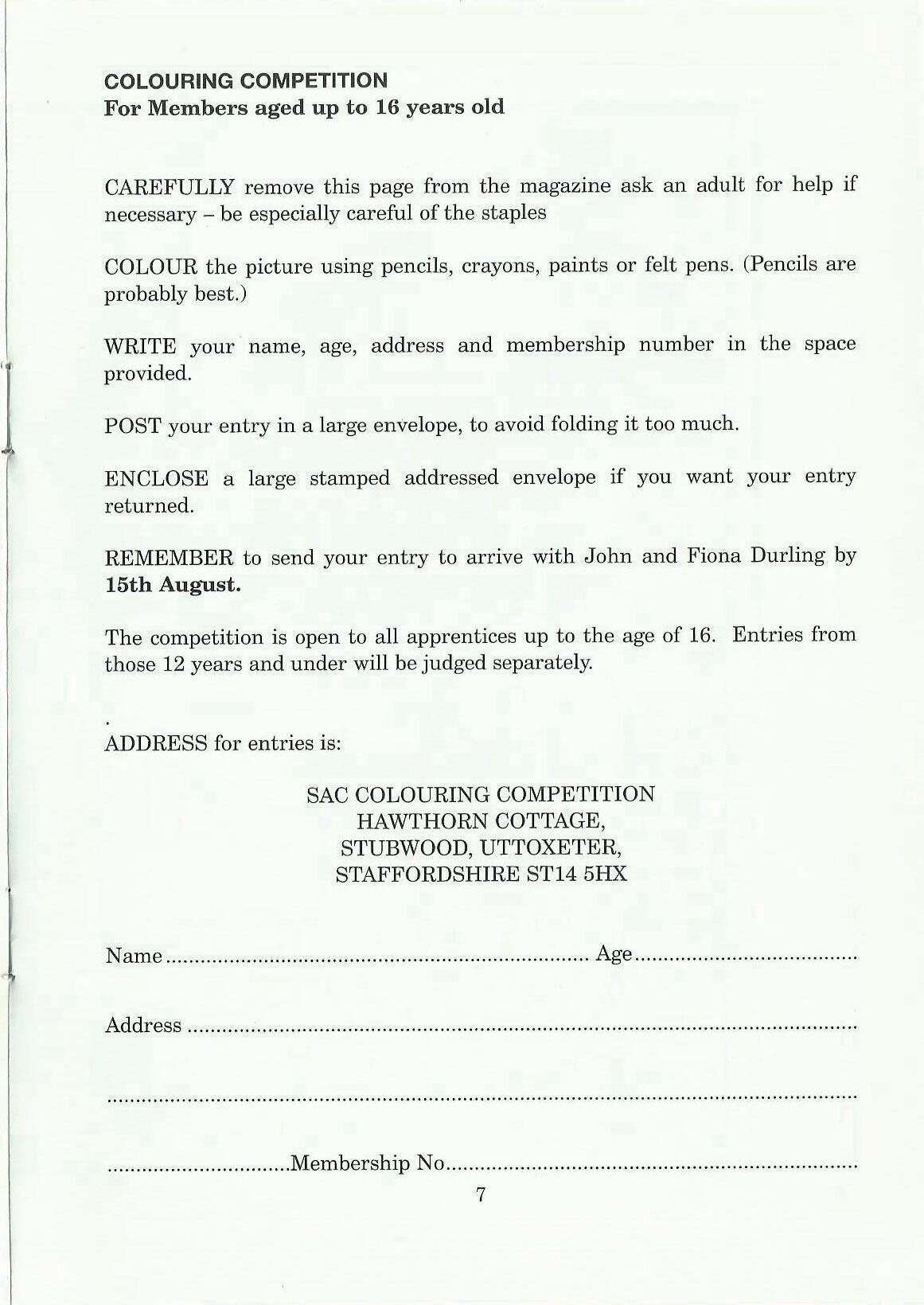 4~All entries must have the following details on the reverse of the photograph: name, address, .age and SAC membership number; place, date and details of the engine or subject. (It is better to write these details on a piece of paper and then stick this on the back of the photo.)