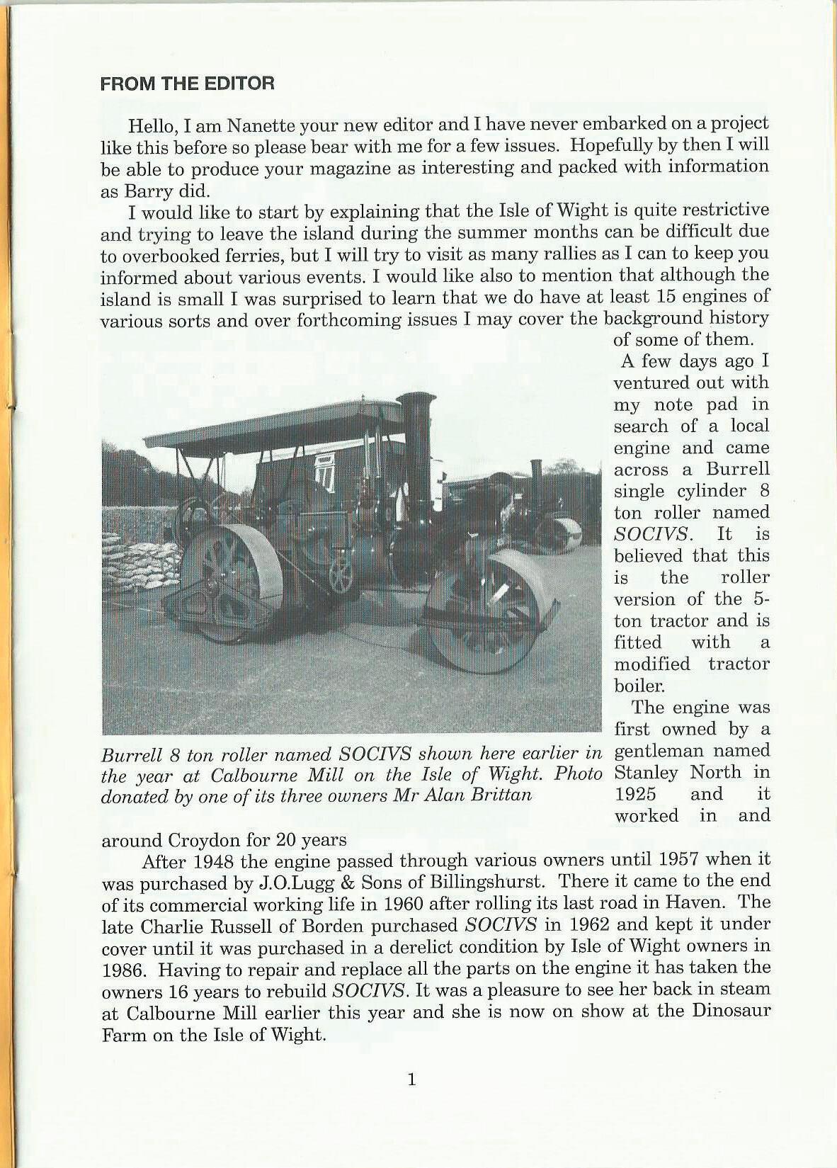 I would like to start by explaining that the Isle of Wight is quite restrictive and trying to leave the island dw·ing the summer months can be difficult due to overbooked ferries, but I will try to visit as many rallies as I can to keep you informed about various events. I would like also to mention that although the island is small I was surprised to learn that we do have at least 15 engines of various sorts and over forthcoming issues I may cover the background hjstory