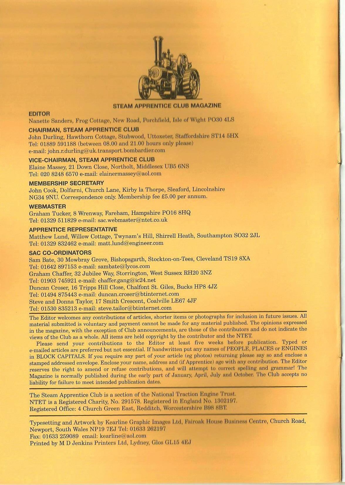 The Steam Apprentice Club is a i.ection of t.lw Nrit m11ul'l'rnl'I m11l•:111f1111'1'1IIHI NTET is a Registered Charity, No. 291678. Hog11•1t1>n•d111l*:11gl11111I No I :Ill'' I 117, Registered Office: 4 Church Green gust, Hl•ddilch, Wm l'll lt:1nh111 ll!IHttll I'