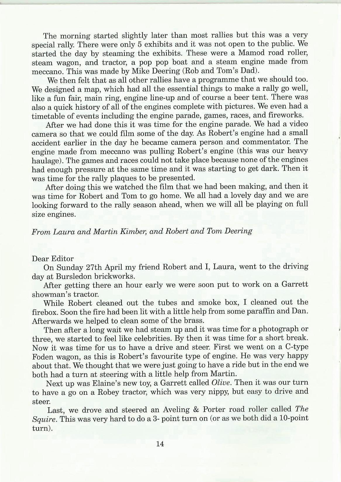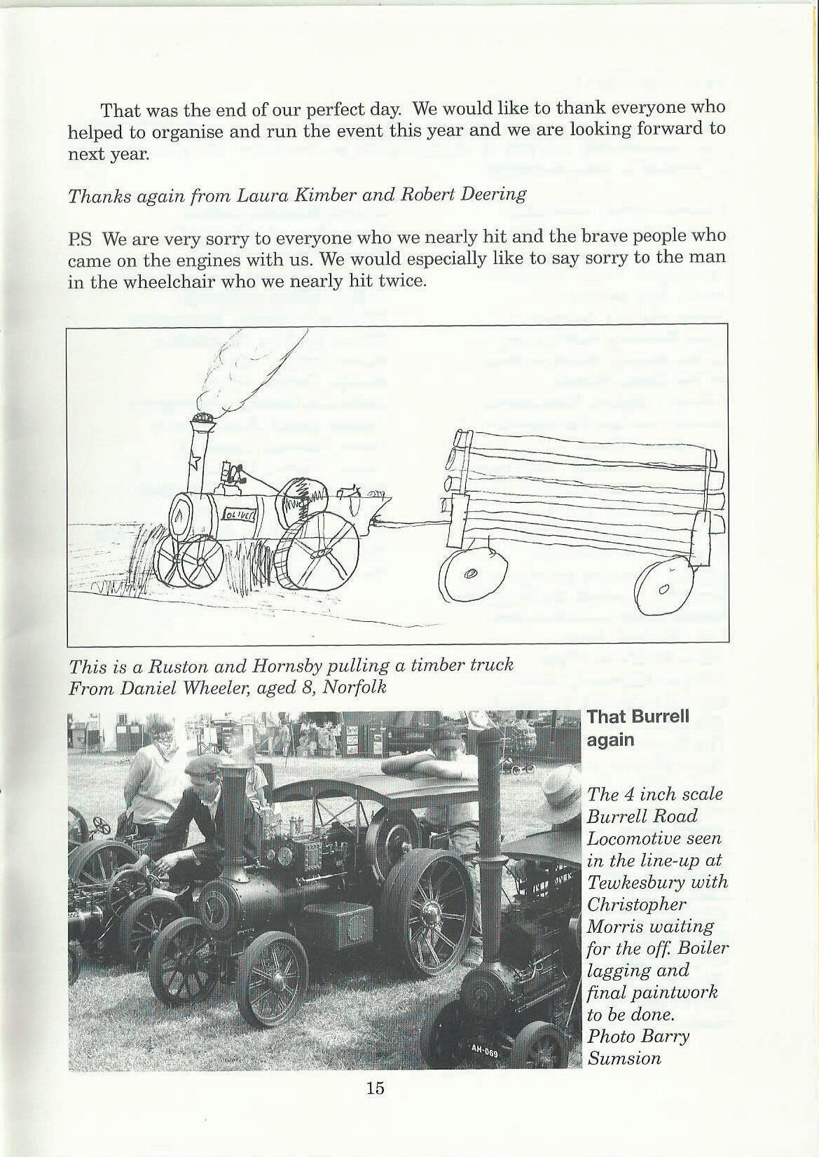 We then felt that as all other rallies have a programme that we should too. We designed a map, which had all the essential things to make a rally go well, like a fun fair, main ring, engine line-up and of course a beer tent. There was also a quick history of all of the engines complete with pictures. We even had a timetable of events including the engine parade, games, races, and fireworks.