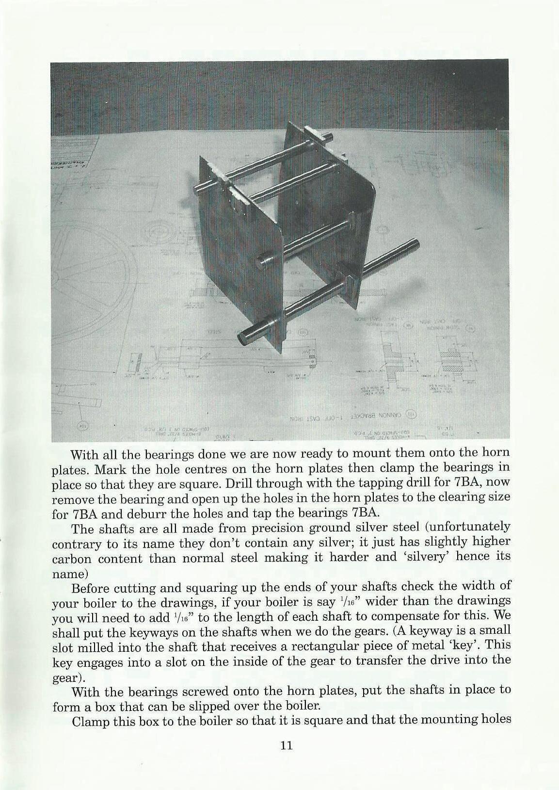 If you look at the bearings on the full size engine you will find a cast bearing holder bolted to the horn plates, this has a bronze insert that may be round in the case of the rear axle or square and in two or more bits for the crank or second shaft.