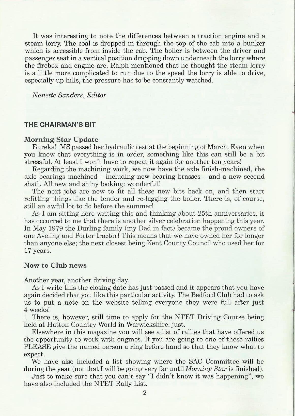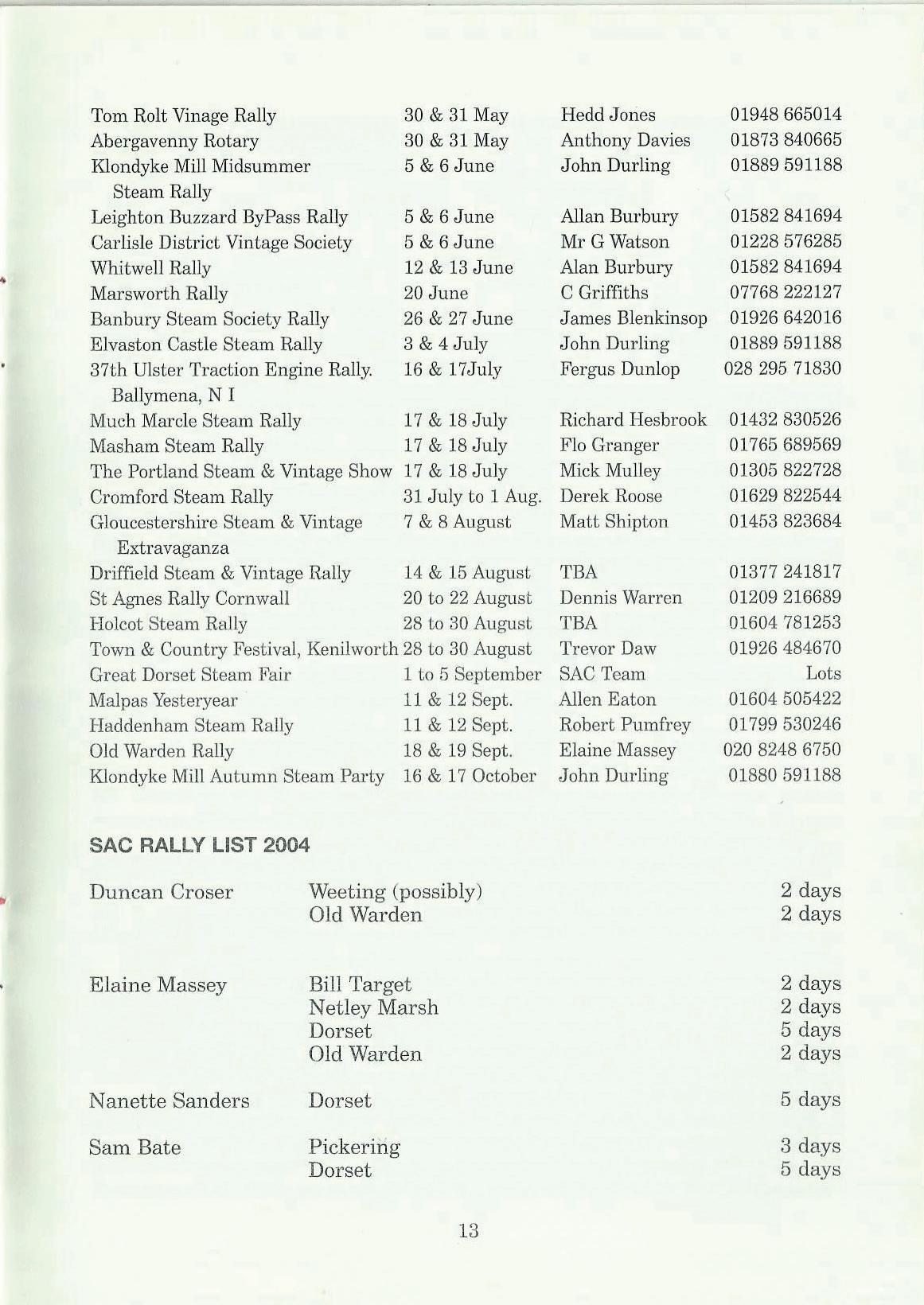 We have also included a list showing where the SAC Committee will be during the year (not that I will be going very far until Morning Star is finished). ,Just to make sure that you can't say "I didn't know it was happening", we have also included the NTET Rally List.