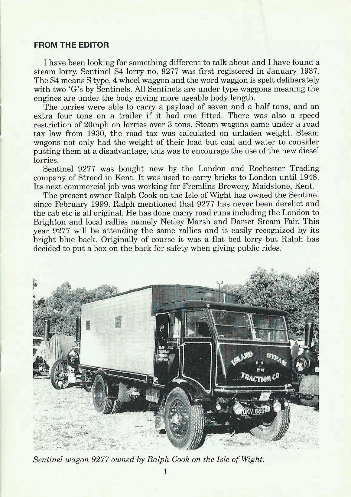 Sentinel wagon 9277 owned by Ralph Cook on the Isle. of Wight.