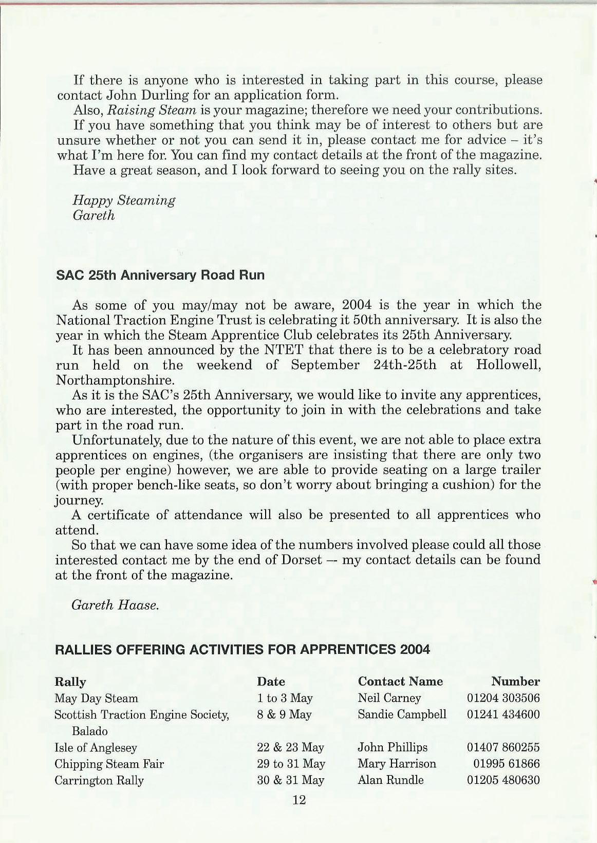 Also, Raising Steam is your magazine; therefore we need your contributions. If you have something that you think may be of interest to others but are unsure whether or not you can send it in, please contact me for advice -it's what I'1n here for. You can find my contact details at the front of the magazine. Have a great season, and I look forward to seeing you on the rally sites.