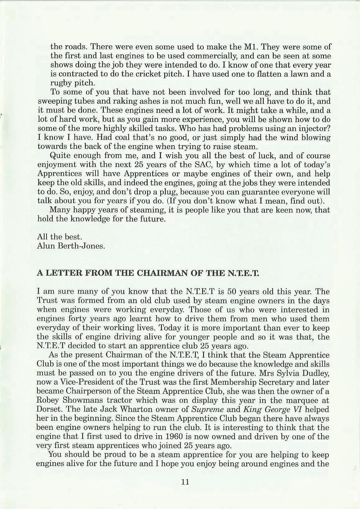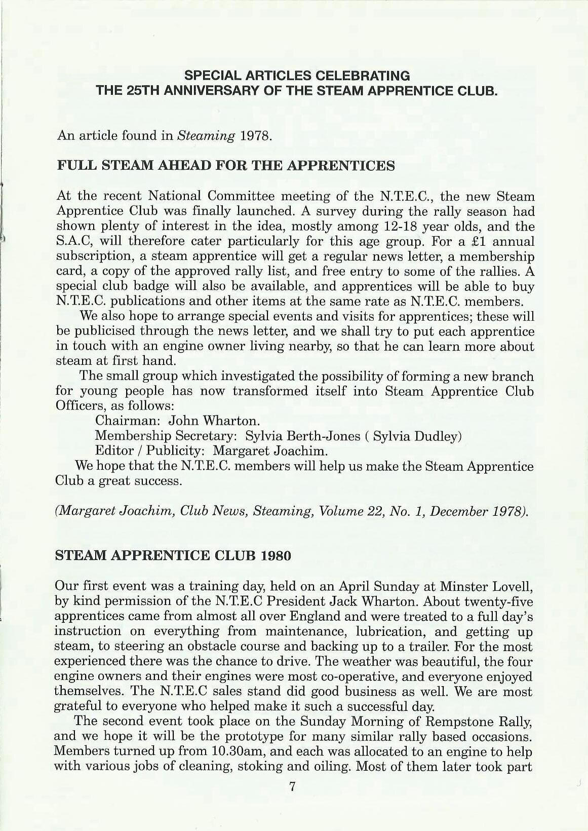 SPECIAL ARTICLES CELEBRATING THE 25TH ANNIVERSARY OF THE STEAM APPRENTICE CLUB.
