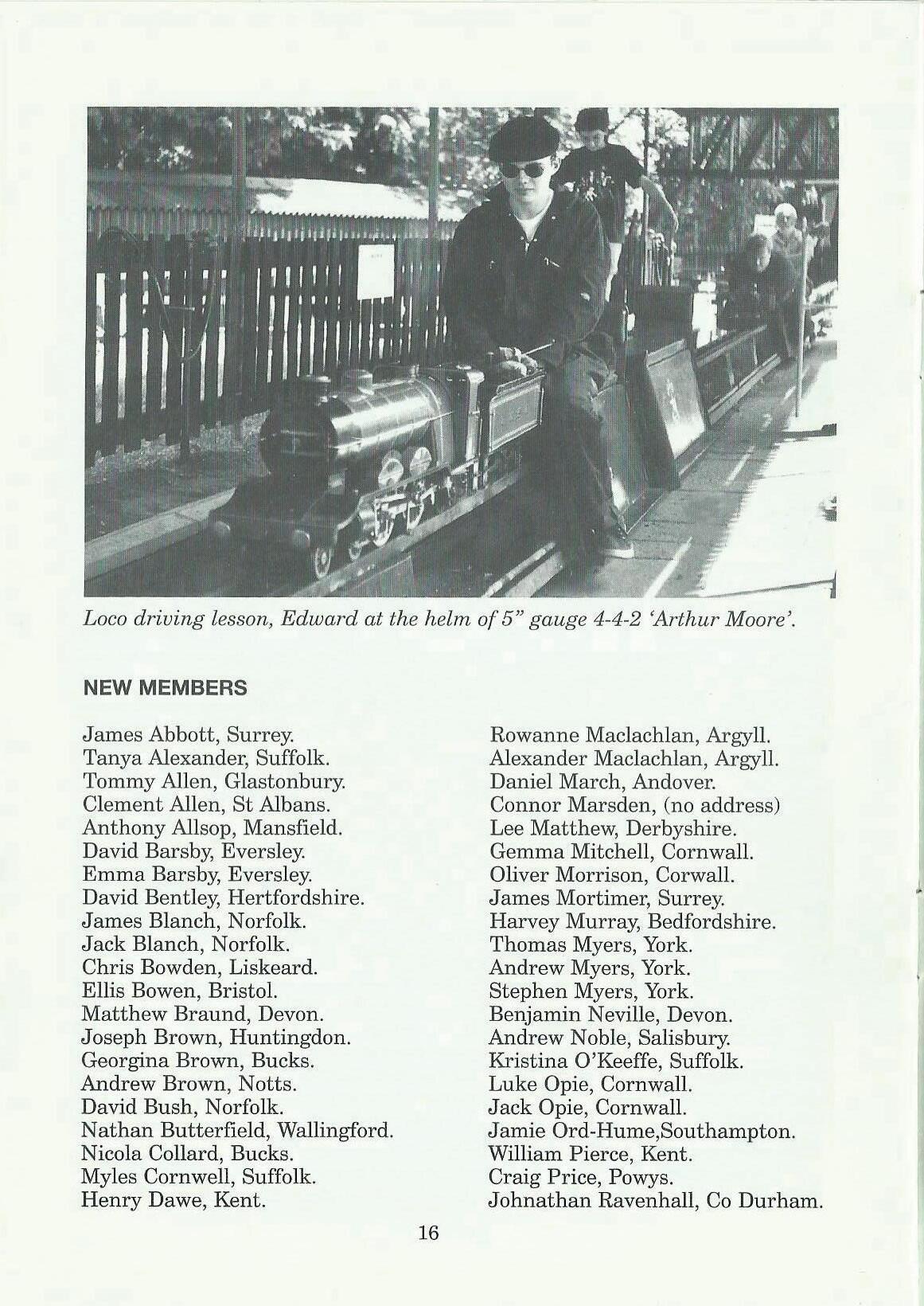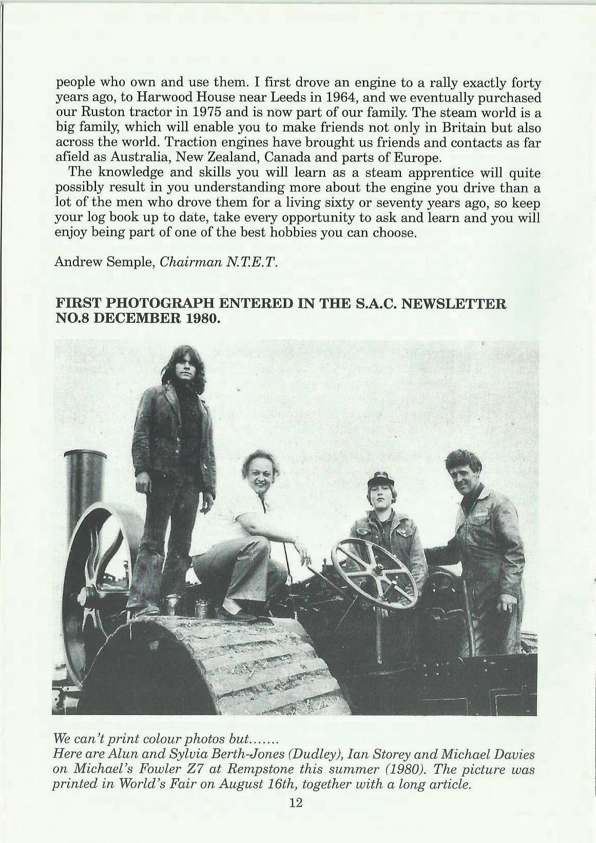 We appreciated that quite a number of our members would change their interests and leave the club, but rarely an issue of Steaming or Old Glory appears when a photograph or mention of one of those early members is included and we are delighted that they are coming forward to work with the committee in the running of the National. I am sure that you will be pleased to