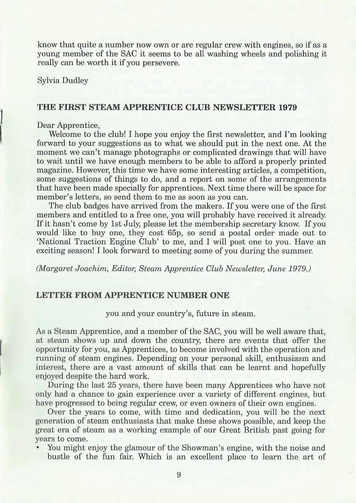 THE FIRST STEAM APPRENTICE CLUB NEWSLETTER 1979
