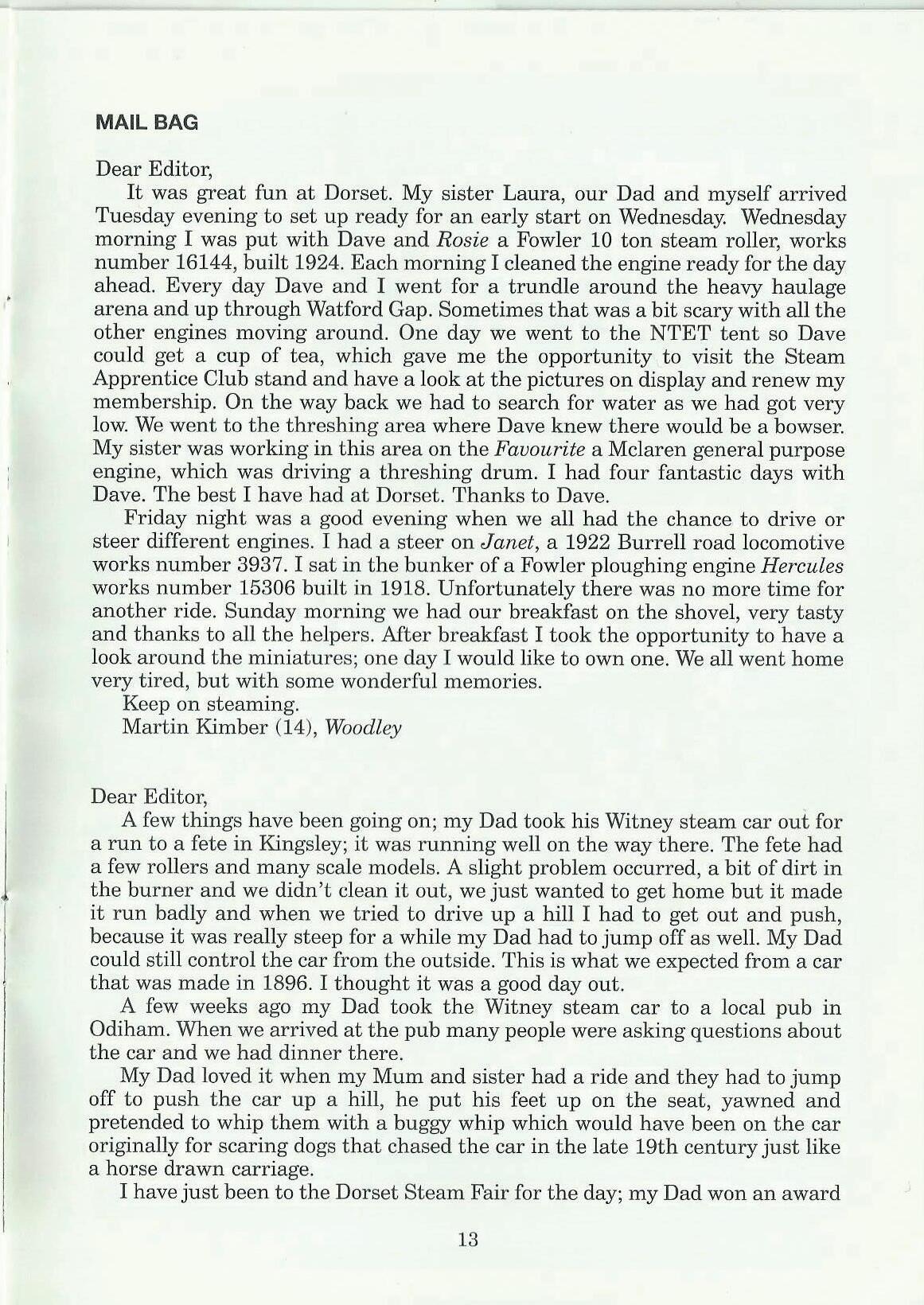 We do rely a great deal on the goodwill of rally organisers and engine owners, and greatly appreciate the help that we get. There will be another SAC session at 10.30am on Sunday, September 14th, at the Roxton Rally. All members and accompanying parents will be most welcome. In fact, one of the commonest sights at an SAC event these days is an envious father on the sidelines.