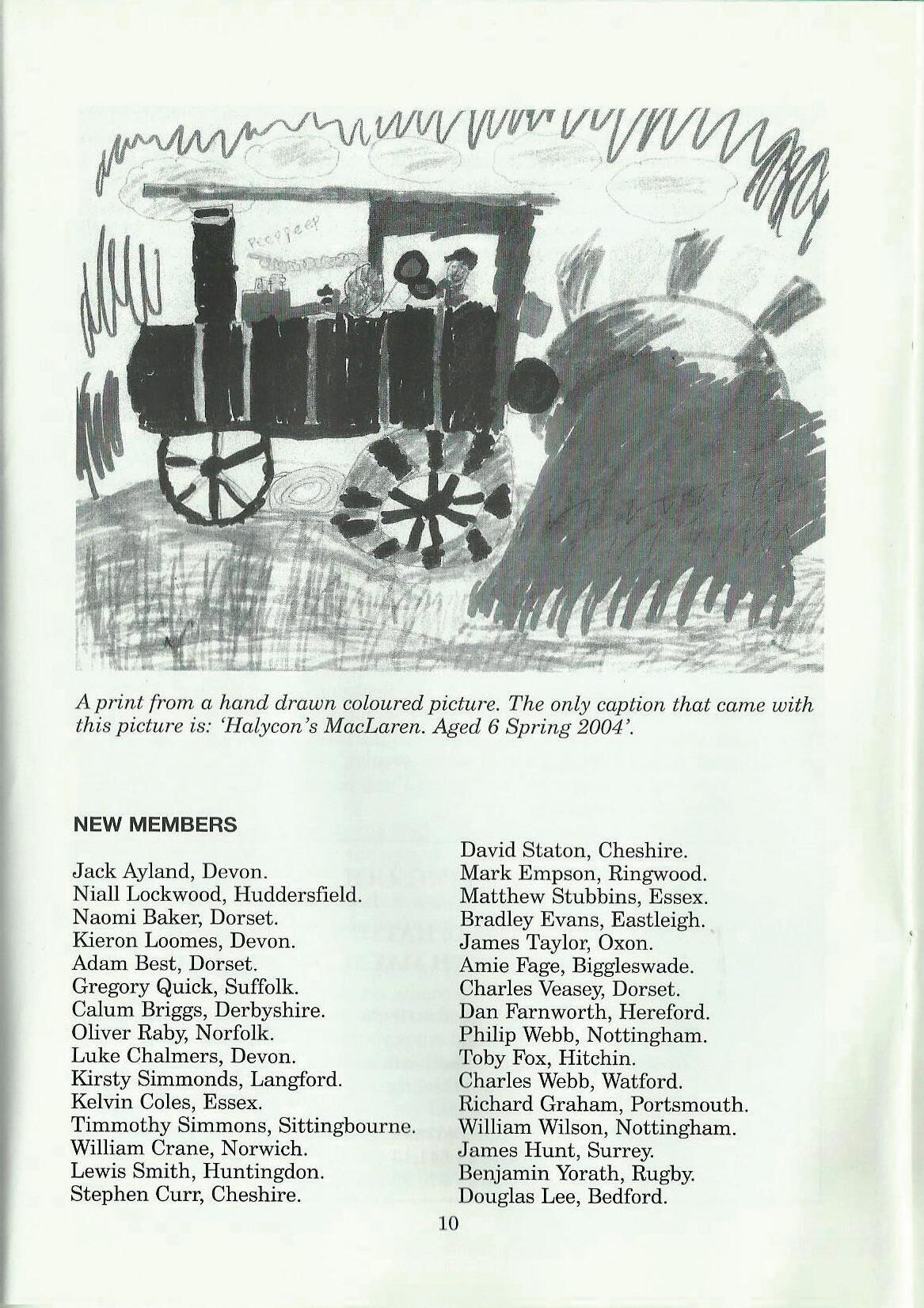 A print from a hand drawn coloured picture. The only caption that came with this picture is: 'Halycon 's MacLaren. Aged 6 Spring 2004'.