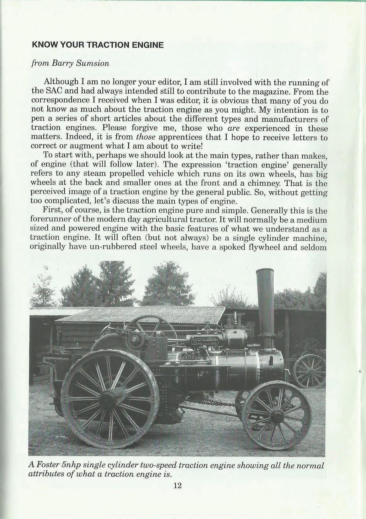 Although I am no longer your editor, I am still involved with the running of the SAC and had always intended still to contribute to the magazine. From the correspondence I received when I was editor, it is obvious that many of you do not know as much about the traction engine as you might. My intention is to pen a series of short articles about the different types and manufacturers of traction engines. Please forgive me, those who are experienced in these matters. Indeed, it is from those apprentices that I hope to receive letters to correct or augment what I am about to write!