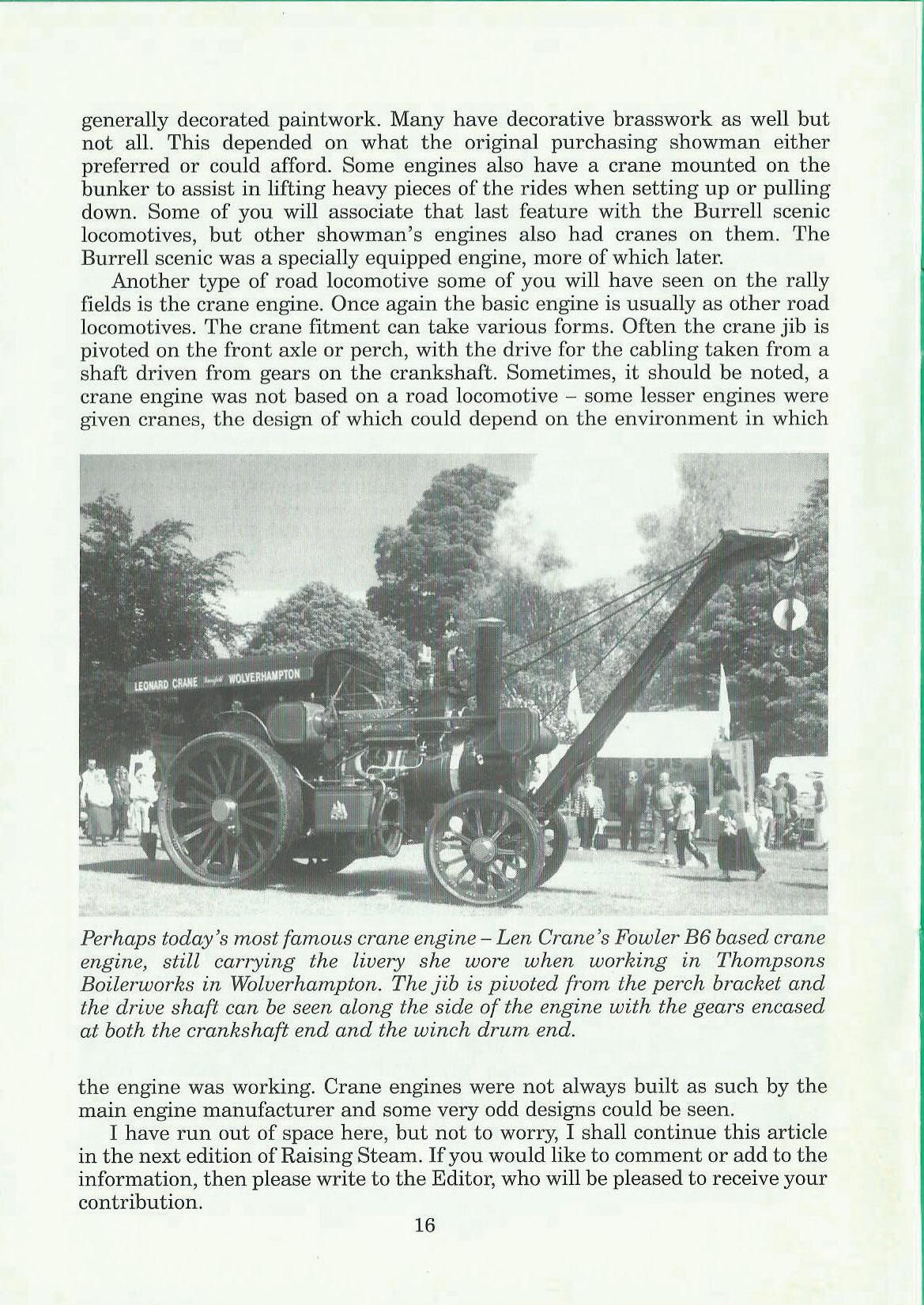 I have run out of space here, but not to worry, I shall continue this article in the next edition of Raising Steam. If you would like to comment or add to the information, then please write to the Editor, who will be pleased to receive your contribution.