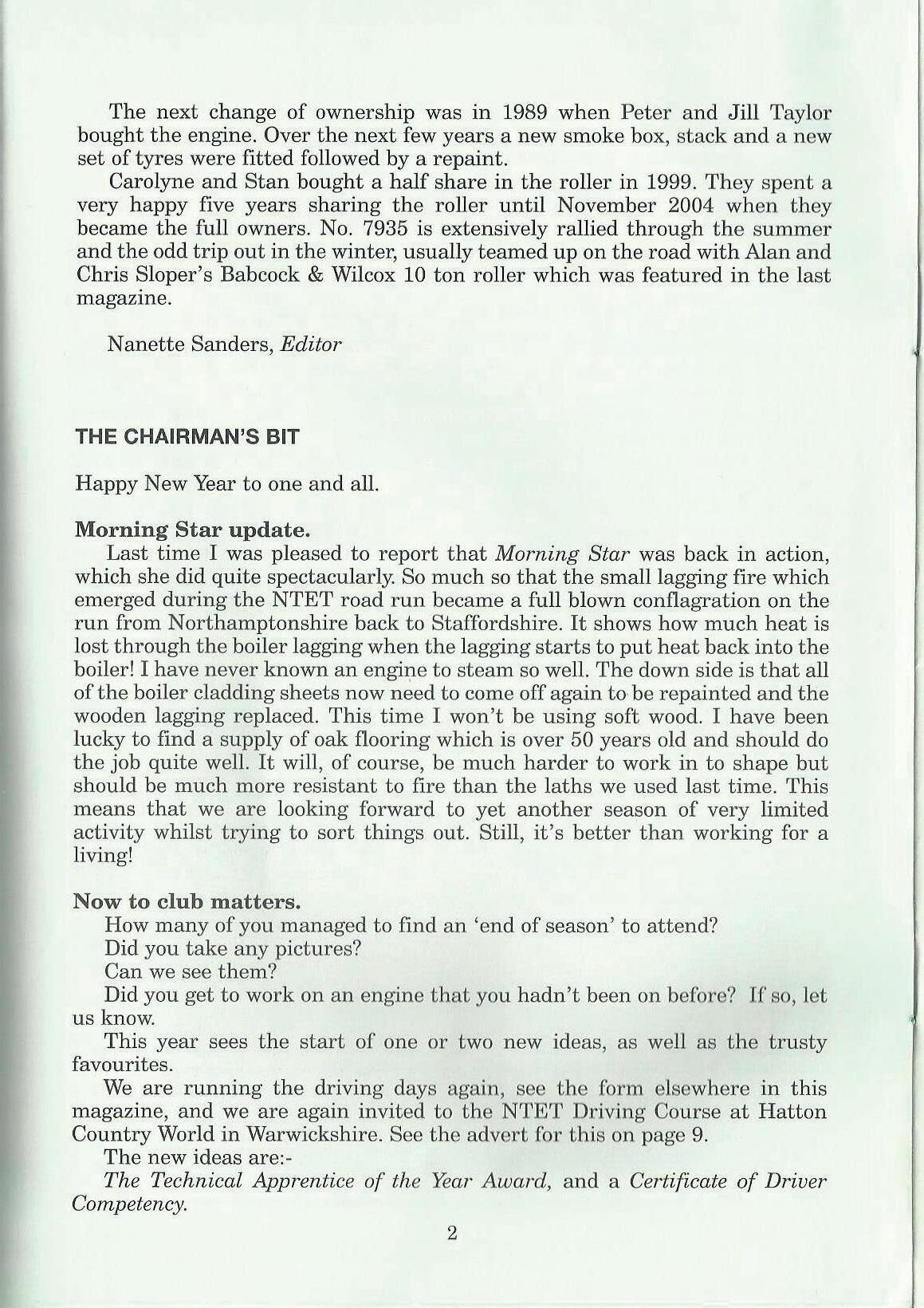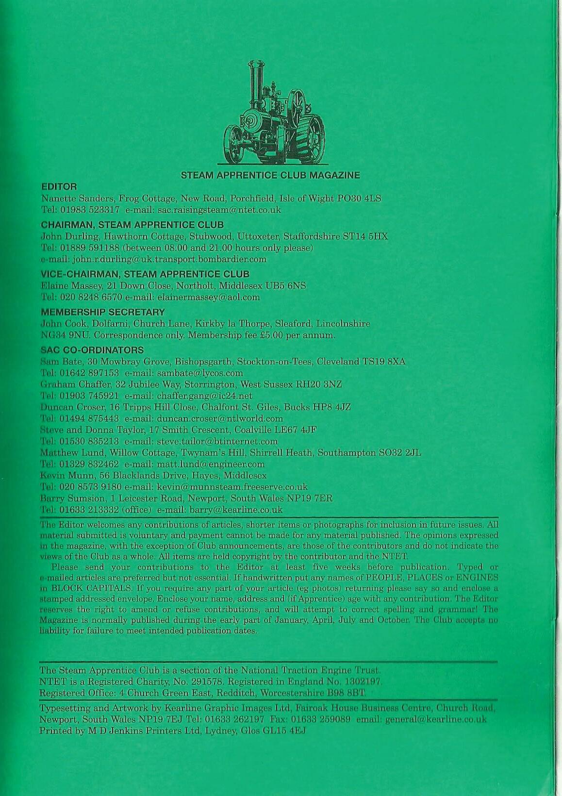 'l'he Steam A'pprentice Club is a section of the Nationa1 Traction Engine Tru~~. NTET is a Registered Charity,'!No, 29J,578. Registered in England No, 1802197 (Registered Office: 4 Church Green East, Redditc'h, WorcesterMhire 1308 AB'J1.