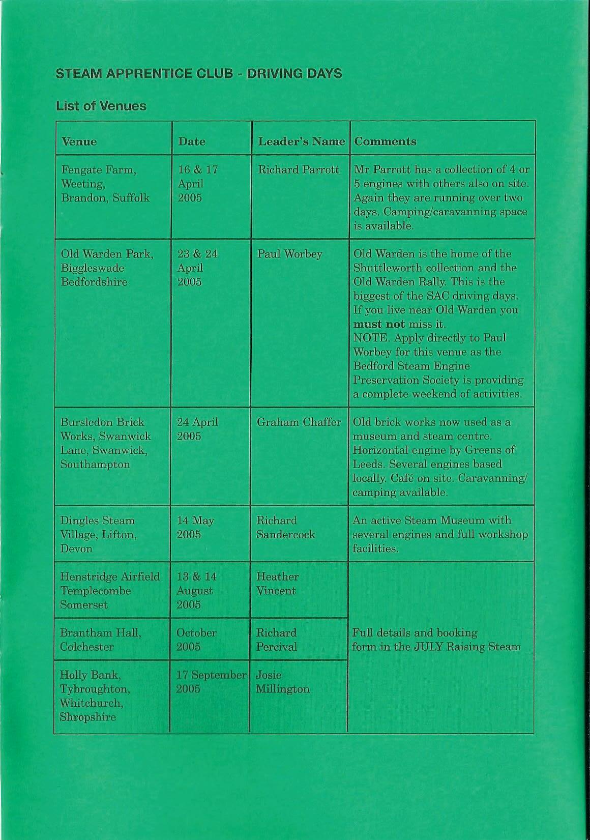 STEAM APPRENTICE CLUB - DRIVING DAYS