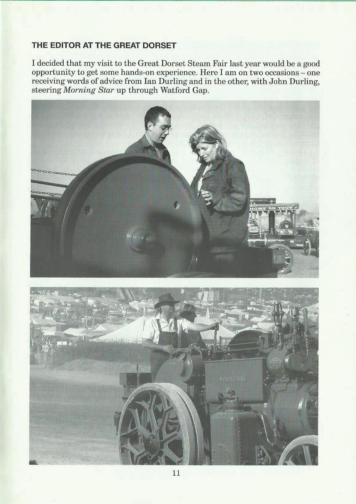 I decided that my visit to the Great Dorset Steam Fair last year would be a good opportunity to get some hands-on experience. Here I am on two occasions - one receiving words of advice from Ian Durling and in the other, with John Durling, steering Morning Star up through Watford Gap.